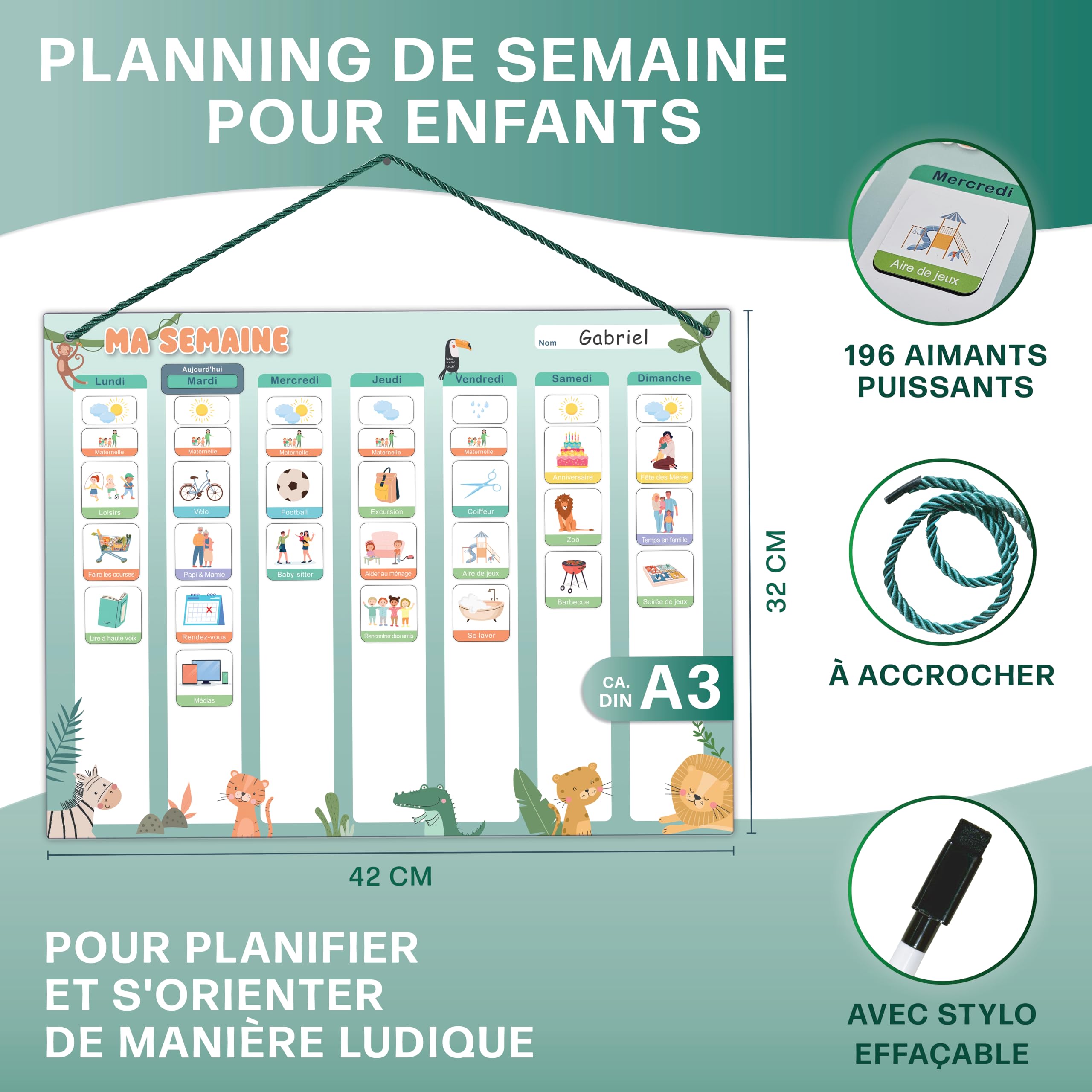 Ensemble de 2 tableaux de travail magnétiques en acrylique pour enfants - Avec ce lot de 2 tableaux de travail magnétiques en acrylique, vous pouvez garder les tâches ménagères quotidiennes et intenses de votre famille claires et organisées, que ce soit pour les devoirs, les rendez-vous ou les devoirs des enfants. Ensemble de tableaux de travail magnétiques en acrylique pour enfants : gardez les tâches quotidiennes et hebdomadaires de votre famille bien visibles et bien organisées avec ce lot de 2 tableaux de travail magnétiques en acrylique. L'effacement est un jeu d'enfant et ne laisse aucune trace ou image fantôme. Parfait et paquet complet - Le tableau de travail magnétique transparent de 20 x 30 cm pour le réfrigérateur offre suffisamment d'espace pour les notes, les événements, les repas et plus encore. Marqueurs ultra transparents et effaçables : notre lot de tableaux effaçables contient 6 marqueurs de 6 couleurs vives. Les Planificateurs Hebdomadaires Ou Quotidiens Notent Des Listes De Autocollants Decores Jolies Illustrations Retro Annees 1970 Mode 567840 603 Marqueurs ultra clairs et effaçable sans effort - Notre kit de tableau de tâches effaçable contient 6 marqueurs de 6 couleurs vives. Essuyez brièvement avec une gomme pour tableau noir ou un chiffon humide et il est prêt à être réutilisé Planning Magnetique - Présentation & visualisation ... En stock. Livraison Express possible avec Amazon Premium. Livraison gratuite. 61,20 € TVA incluse Tableau Rituel Enfant BIROYAL Lot De 2 Calendrier Magnetique Frigo(Avec Marqueurs 6 Couleurs) - Acrylique Tableau Magnetique Frigo - Planning Semaine - 30x20 Cm - Planificateur Hebdomadaire - Tableau Organisation Famille Ma Taille parfaite et paquet complet : la table de travail magnétique transparente de 20 x 30 cm offre suffisamment d'espace pour les notes, les événements, les repas et plus encore. Équipé de quatre aimants durables, ce plan de travail en acrylique adhère en toute sécurité aux surfaces métalliques et à la plupart des réfrigérateurs. Avec un planning magnétique vous pouvez à la fois épinglez à l'aide de magnets tous vos papiers importants, et écrire toutes les infos que vous le souhaitez En outre, 12 joints en silicone fournis protègent votre réfrigérateur des rayures causées par les aimants. En outre, 12 joints en silicone inclus protègent votre réfrigérateur des rayures causées par les aimants Description du produit BIROYAL Tableau de récompense en acrylique pour enfants, plan de travail magnétique effaçable pour réfrigérateur, 2 planificateurs familiaux avec 6 stylos, planificateur de réfrigérateur, tableau acrylique, tableaux de planification, planificateur de ménage, tableau mémo. Il est parfait pour les listes de tâches des enfants, le suivi du comportement des enfants, la facilitation de l'enseignement en petits groupes, l'enseignement à domicile, la fourniture de matériel enseignant important, pour aider à la planification hebdomadaire pour les adultes et bien plus encore