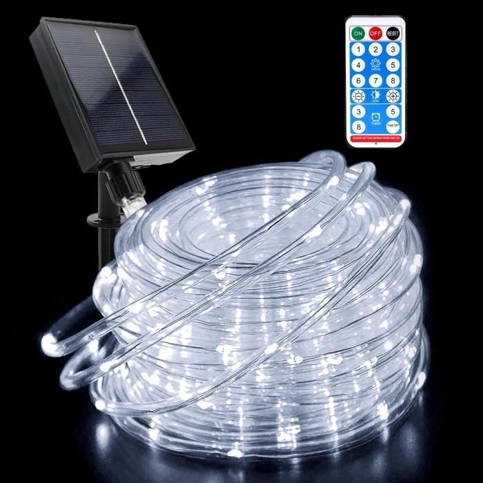 Tube LED : 10., 5 mètres (tube de 10 mètres + câble d'alimentation de 3 mètres). Tube Lumineux Noel Guirlande Lumineuse Tube LED Intérieur Et Extérieur - Étanche IP44 - 8 Guirlande Lumineuse 10.5m 100 Led Nombre de LED : 100 LED blanc chaud., Épaisseur : 5 mm. Guirlande LED étanche : Ces guirlandes peuvent être utilisées sous une fine pluie. Pour toute question, veuillez nous envoyer un e-mail. Kimuwote Guirlande lumineuse LED Extérieur et Guirlande lumineuse vintage d'extérieur avec 20 ampoules: la guirlande lumineuse LED mesure 10 m de long au total, avec 20 ampoules Espacement des LED : 10 cm., Longueur totale : 14 cm. Mais la prise n'est pas étanche (à tenir éloignée de l'humidité et des sources de chaleur) ; le tube LED est classé IP65 pour l'étanchéité. Service après-vente 365 jours : Nous offrons des conseils après-vente 365 jours et un service de remplacement sous 90 jours. 8 modes d'éclairage + minuterie + intensité réglable : Avec la télécommande, vous pouvez choisir parmi 8 modes dynamiques – du clignotement doux à l'éclairage continu – et ajuster la luminosité sur 4 niveaux. Achetez en toute confiance. La fonction minuterie (6 heures allumée / 18 heures éteinte) assure commodité et économie d'énergie. Tube lumineux 180 LED (10 m) Blanc froid - Décoration lumineuse