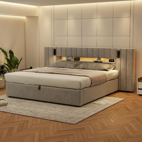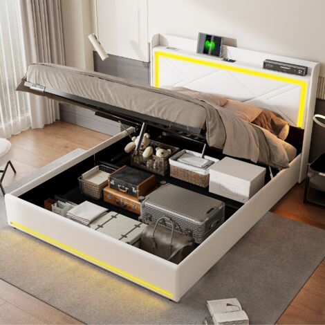 Style : Moderne et fonctionnel Le montage est simple grâce à des pièces identifiées et un manuel clair. Le revêtement en PU blanc haut de gamme est facile à nettoyer et résistant, et l’espace sous le lit facilite l’entretien et le passage de l’aspirateur. L’espace sous le lit facilite le passage de l’aspirateur et le maintien de la chambre propre. 🛏️【Robuste, confortable et silencieux】 : La structure combine un cadre métallique solide et des lattes en bois de qualité, tandis que les bords rembourrés réduisent les bruits et les vibrations, offrant un sommeil paisible et confortable. Lit Haut 160x200 Lit Double Rembourré Roskilde Avec Éclairage Intégré LED Similicuir 140 Lit Design Moderne Remarque : Matelas non inclus Le revêtement en PU blanc haut de gamme est durable et facile à nettoyer. Couleur : Blanc et bois clair 🛏️【Rangement pratique et ports USB intégrés】 : La tête de lit rembourrée avec des compartiments de rangement et des petits poches latérales permet de ranger téléphone, clés ou autres petits objets. Avancez vers le futur - directement depuis votre lit - avec des prises intégrées pratiques, bannissant le chaos des fils emmêlés. La tête de lit rembourrée confortable fait également office de niche de rangement intelligente, ajoutant une touche d'élégance tout en vous enveloppant dans la détente La structure solide en cadre métallique et lattes en bois assure stabilité et durabilité, tandis que les bords rembourrés améliorent le confort et réduisent les bruits ou vibrations pendant la nuit. Ports USB : 2 ports intégrés sur le dessus du meuble Ajustez facilement la couleur, la luminosité et les modes pour une ambiance personnalisée. Remarque : Ce produit est un cadre de lit, matelas non inclus. Lit Double Rembourré, 160 X 200, Avec LED Et USB, Cadre De Lit Flottant, Avec Sommier à Lattes, Noir Lit double en bois 160×200cm avec 2 tiroirs, tête de lit avec lampe de lecture et fonction de charge USB, lit moderne comprenant 2 tables de chevet | Leroy Merlin Montage : Assemblage requis, manuel inclus