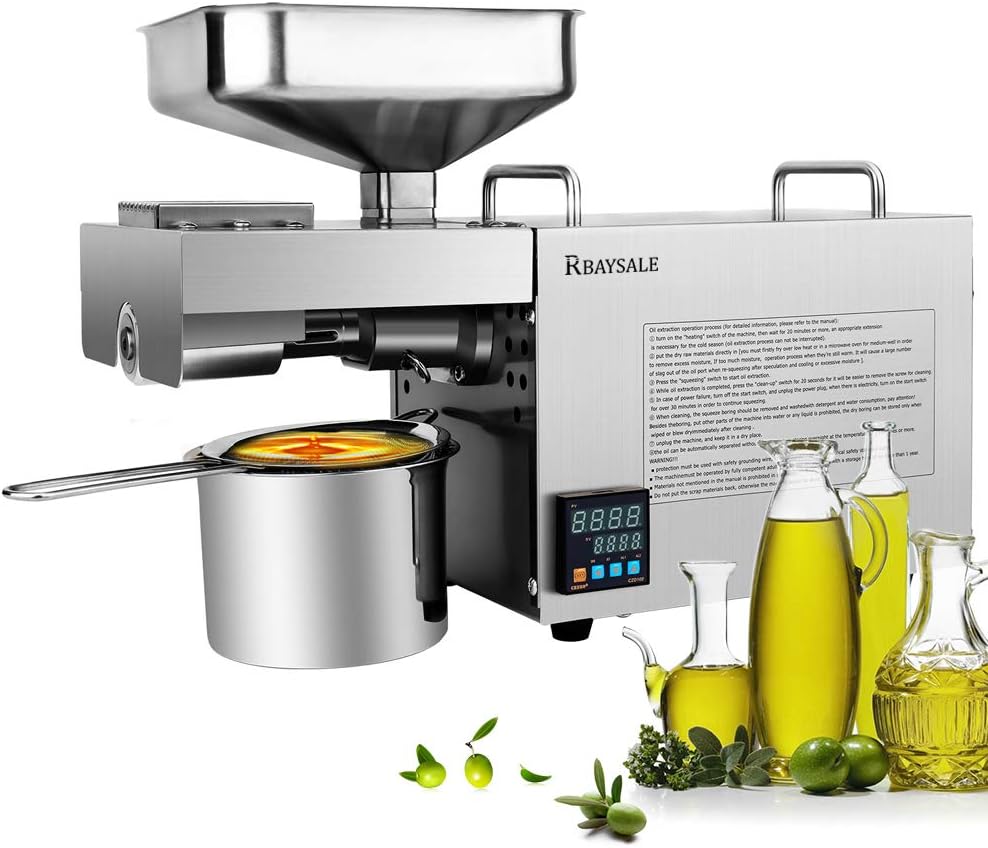 PRESSE À HUILE CHAUDE ET FROIDE:La presse à huile a deux méthodes : le pressage à froid et le pressage à chaud. Fonctionnalité] - Presse à huile électrique, vous offrant une vie saine et nutritive ; - Fabriqué en acier inoxydable de haute qualité, robuste et durable ; - Accessoires complets et installation facile 【Santé pour Vous et Votre Famille】 Réinventez votre cuisine avec ce presse-huile électrique et savourez des huiles fraîches maison. Si vous n'êtes pas sûr que vos matières premières conviennent à cette machine, veuillez nous contacter Conception de boucle innovante, démontage plus facile et nettoyage plus facile L'odeur est très parfumée et le rendement en huile est élevé PRESSOIR HUILE DE NOIX INTELLIGENT & HAUTE PERFORMANCE:Conception humanisée, contrôle automatique de la température, vitesse de réponse rapide, puce à grande vitesse, capacité de traitement rapide, réglage et fonctionnement simples et pratiques. Description du produit machine à pression d'huile pour semences multiples telles que l'arachide , le soja , le tournesol etc Profil de l'entreprise Nos... Montage et démontage rapides pour un nettoyage simplifié 【Conception Robustesse】 Tige de pression en acier inoxydable ultra-résistant Engrenages en acier et moteur haute performance 【Polyvalence d'Utilisation】 Extrait des huiles de plus de 30 graines et noix. Presse à froid automatique de haute qualité sésame presse à huile d Pressage Chaud Froid Inox Presse Huile Olive, Presse-Huile Automatique Pour Olives Pressage Chaud Froid Graines Noix Pendant le processus de pressage à chaud, les ingrédients sont torréfiés puis extraits de l'huile. PRESSE À HUILE CHAUDE ET FROIDE:Notre presse à huile permet le pressage direct des matières premières, offrant des options pressage à chaud et à froid. Le pressage à froid permet un pressage direct sans pré-frire les matières premières, préservant la saveur naturelle, couleur et les nutriments de l'huile. PRESSOIR HUILE DOLIVE MATÉRIAU:Fabriqué en acier inoxydable 304 de qualité alimentaire, résistant à la corrosion et durable. De plus, la presse à huile dispose d'accessoires complets et est facile à installer.