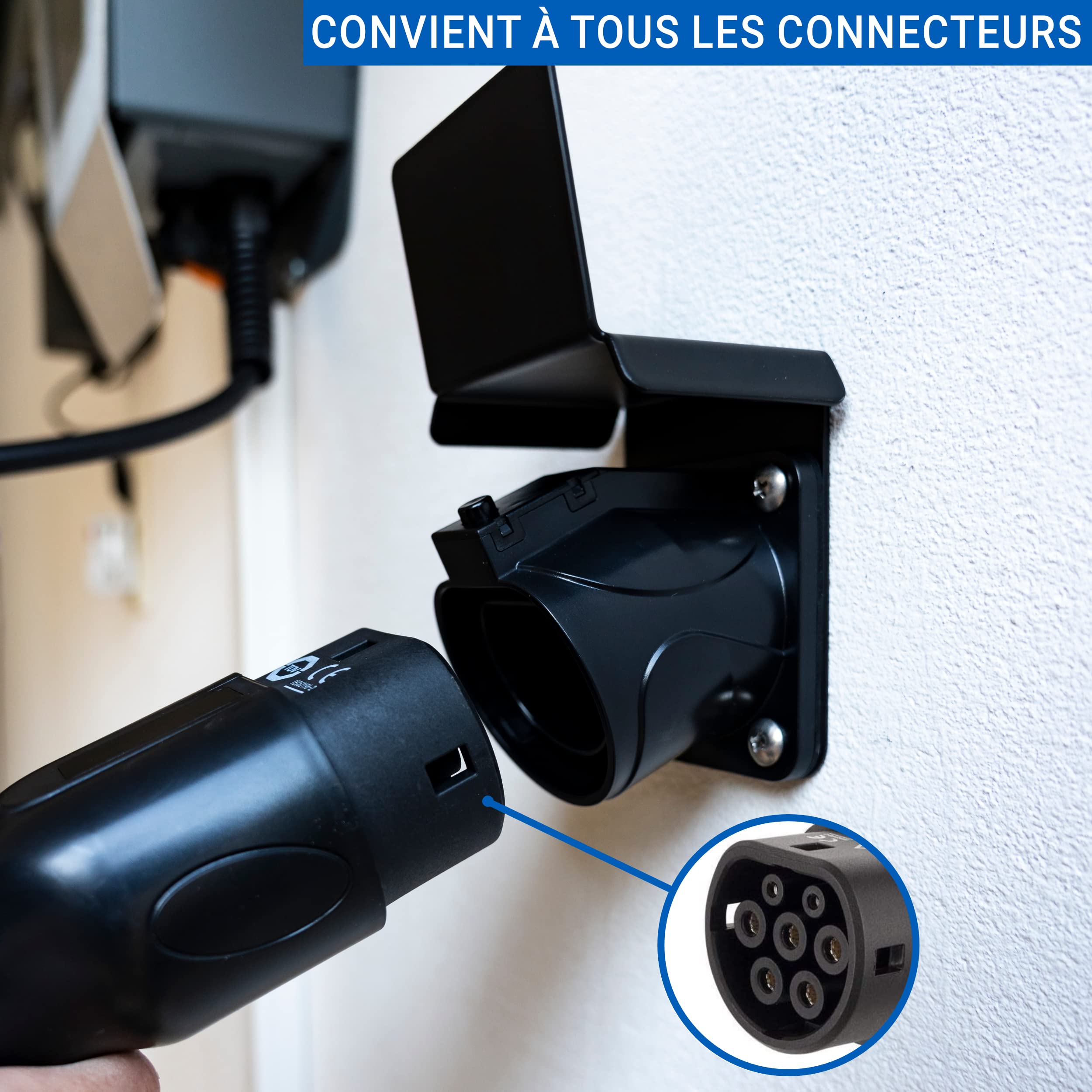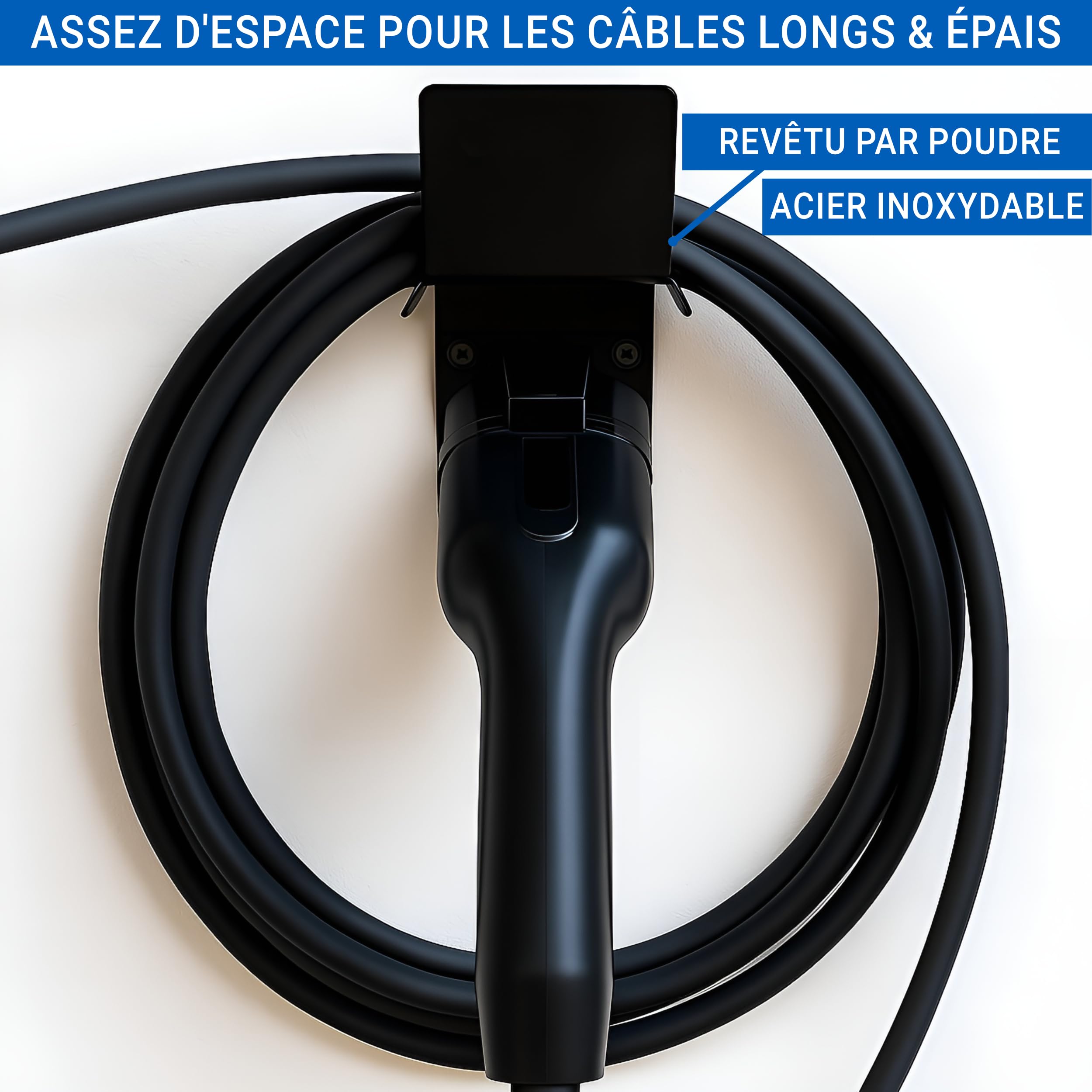 Organisation optimisée : empêche les enchevêtrements du câble de charge et maintient l'espace de chargement bien rangé grâce à la suspension peu encombrante. Support mural de fiche de type 2 - Carré | Leroy Merlin Caractéristiques : Matériau : plastique ABS de haute qualité (imperméable, résistant aux UV) Plage de température : de -30 °C à +50 °C (pour l'intérieur et l'extérieur) Contenu de la livraison : 1 support mural de type 2 6 chevilles en nylon. Aucun outil supplémentaire nécessaire : fixez le système de support de charge en toute sécurité sur les murs du garage ou les surfaces extérieures. Le support mural de type 2 maintient les câbles toujours à portée de main et prolonge la durée de vie de votre chargeur EV grâce à un stockage en douceur Support Mural Câble Recharge Type 2 MCEVKELN Wallbox Support Mural De Cable Type 2| Support De Type 2 Chargeur Pour Voiture Electrique Avec Connecteur Iec 62196 2 Organiseur De Ev Cable Accessoire Station De Charge Noir Rangement Câble Recharge Murale Cet accessoire pratique protège le connecteur de la poussière et de l'humidité, idéal pour l'intérieur et l'extérieur. Compatibilité universelle : compatible avec les câbles de charge de type 2 conformes à la norme européenne selon la norme IEC 62196-2, y compris les modèles pour T-esla Model 3/Y et d'autres types de voitures électriques. Le support de câble polyvalent est adapté comme accessoire essentiel pour les stations de charge privées et commerciales. Matériau robuste : fabriqué en plastique ABS durable, ce support résiste aux températures extrêmes (-30 °C à +50 °C), aux rayons UV et aux intempéries. Support de câble de charge EV, montage mural, résistant à l'usure, à la La construction étanche et étanche à la poussière protège votre chargeur EV de manière durable et est parfaite pour ranger les câbles de charge de type 2 dans les stations murales. Notre support de câble mural convient aux câbles de charge de type 2 (IEC 62196-2) et constitue l'accessoire parfait pour les véhicules électriques (VE). Il est compatible avec la plupart des câbles de charge EV et hybrides populaires tels que les modèles 3/X/Y/S, i3, ID.4, ID.5, e-Golf, 500e, e 208, 3008, E-tron, Kona, Zoe, Ioniq 5 et...