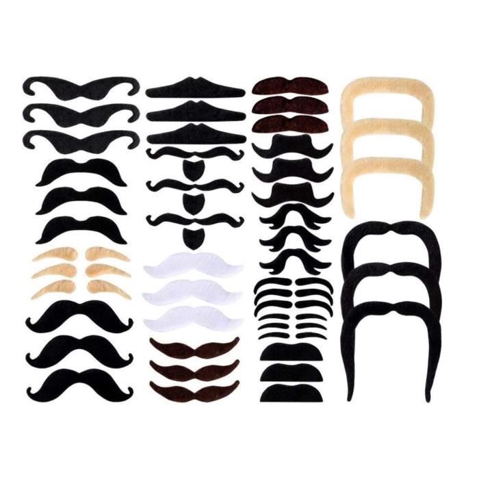 24/48 pièces - Ensemble de fausses moustaches auto-adhésives Costume Humour Photo FUIPVGI 24 Pièces Assorties Fausses Moustaches Auto-adhésives Large application : Cette mignonne fausse barbe convient à de nombreuses occasions amusantes, telles que les fêtes d'anniversaire, les fêtes costumées, Halloween, Noël, les réunions d'amis, les pièces de théâtre à l'école, les fêtes de famille, les célébrations au bureau et les productions théâtrales. Inclus dans le paquet : Ces 24 fausses moustaches noires autocollantes sont faciles à appliquer et à retirer. Facile à utiliser:Autocollant, il suffit de décoller le papier au dos et de le coller directement. Moustache auto-adhésive. 2,49 € HT 2,99 €. Choisissez votre option. Taille Unique. Moustache adhésive noire adulte 1. 5. Moustache adhésive noire adulte. Incl Rendez vous ou votre événement mémorable, imaginez les fantastiques opportunités de photos. Fausses moustaches grises de militaire Tout le monde se souviendra du personnage avec ce look impressionnant. Matériau de qualité:Ces fausses barbes amusantes sont fabriquées en peluche, un matériau très confortable, léger, qui n'encombrera pas votre visage et vos oreilles, et qui est agréable à porter.