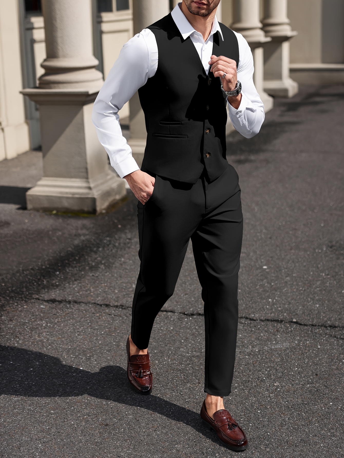 Elle ajoute instantanément une touche raffinée et professionnelle à n'importe quelle tenue, parfaite pour les occasions d'affaires ou les soirées élégantes. Gilet de costume d'affaires pour homme – Coupe ajustée – Col Gilet moderne d'affaires : gilet de costume de loisirs simplement magnifiquement coupé, excellent savoir-faire, conçu avec 2 poches avant, 1 poche poitrine, fermeture à 6 boutons sur le devant, sangle arrière réglable pour un ajustement plus précis Idéal pour un look professionnel moderne. Le mélange de matériaux facile d'entretien et facile à repasser rend la manipulation facile. La coupe slim fit donne une silhouette contemporaine et cintrée. Elle assure une température corporelle agréable, que ce soit au bureau ou lors d'événements. La boucle arrière réglable permet un ajustement personnalisé pour un ajustement parfait et un confort garanti. Élégance intemporelle et confort moderne : gilet de costume pour homme Présentez-vous avec le complément parfait à votre look d'affaires et de vacances. Gilet Slim Fit Professionnel Gilet D'affaires Pour Homme - Coupe Ajustée - Gilet De Gilet Col En V Avec 6 Boutons Le gilet met en valeur vos épaules et assure une apparence mince. AGE ALE Costue 3 pièces pour hoe, coupe ajustée, un bouton, châle, revers uni, blazer... Polyvalence maximale Idéal pour de nombreuses occasions Détails pratiques pour la vie quotidienne Design sophistiqué avec quatre poches : deux poches latérales et deux poches poitrine offrent un espace de rangement élégant. Détails pratiques et fonctionnalité : le design bien pensé avec poches offre un espace de rangement élégant pour vos essentiels. Le matériau est agréablement doux, extensible pour une plus grande liberté de mouvement et respirant. L'encolure en U classique et le devant à 6 boutons soulignent l'aspect élégant. Combinabilité polyvalente : pièce de superposition parfaite ! Le matériau est agréable sur la peau, respirant et conserve sa forme même en cas de port prolongé. Qualité et finition durables - Artisanat de qualité supérieure pour un plaisir durable : finition précise, boutons robustes et doublure de qualité supérieure garantissent une durabilité exceptionnelle. Matériau de qualité supérieure et respirabilité - Fabriqué à partir d'un mélange de coton stretch de qualité supérieure pour un maximum de confort.