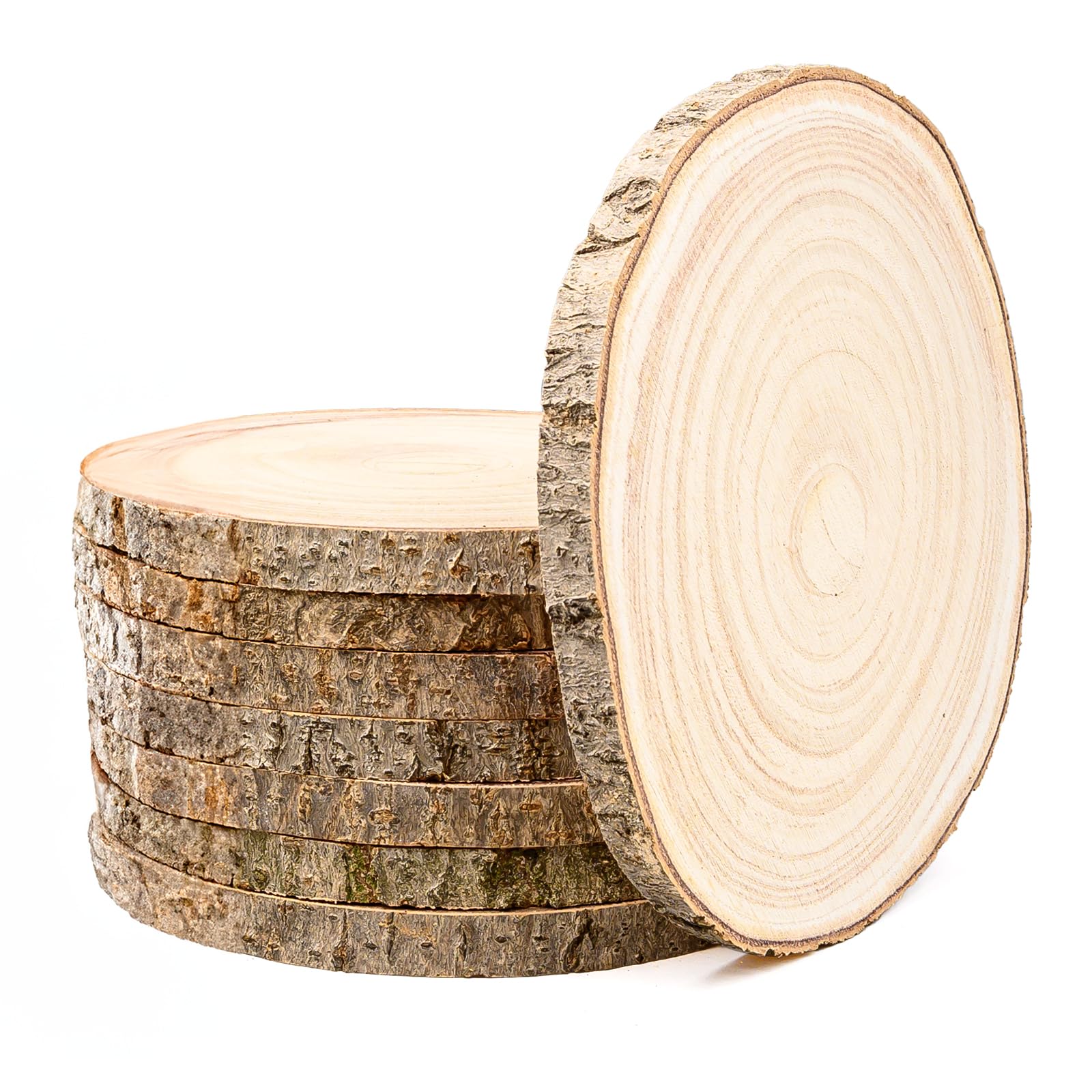 【8 Grandes Tranches de Bois】 Ces tranches de bois rondes mesurent environ 20-23 cm de diamètre et 2 cm d'épaisseur. Fuyit Rondin de Bois 13-14cm sans Trou 8 Pcs Tranches de Bois Naturel Convient pour Decoration Utilisation Polyvalente] Vous pouvez utiliser ces tranches de bois rondes dans de nombreuses occasions telles que centres de table, décorations de mariage, présentoirs à cupcakes, objets d'art en bois, panneaux de bienvenue pour portes, ornements de Noël, accessoires pour la photographie de fête Taille : Environ 9 à 9,75 pouces de diamètre, Épaisseur : 0,75 pouce, Poids total : 5,73 livres Chaque pièce présente des couleurs naturelles de bois avec l'écorce intacte, une surface polie et une texture lisse. Copeaux de Bois Naturels Nos copeaux de bois sont entièrement naturels, ce qui signifie que chaque pièce peut ne pas être parfaitement ronde ; ils sont uniques. Montrez à vos amis et à votre famille votre style unique avec cet adorable ensemble de pièces en bois ! Avec leur surface lisse et naturelle, elles offrent une excellente toile pour la peinture, les graffitis, les projets de bricolage, la pyrogravure, les panneaux, les teintures, les gravures, et plus encore. 8-pack de tranches de bois naturel de 9 à 10 pouces pour centres de table. 20-22cm Rondin de Bois Sans Trou,1Plusselect 2pcs Rondelles en Bois Naturel, Tranches de Bois Naturel 20mm D'épaisseur,Rond en bois pour Bricolage,Artisanat,Marque Place Mariage,Décoration de Noël Bois Matériaux de Haute Qualité Fabriqués à partir de bois de haute qualité, provenant de sources durables, nos copeaux de bois sont durables et apportent une beauté naturelle à votre vie. 20set Blank Wood Carte de visite Carte de nom en bois Non fini Panneaux de signalisation en bois... Réalisez des Projets DIY Ces pièces de bois non finies sont soigneusement découpées et poncées, adaptées à la peinture, à la sculpture sur bois, aux panneaux en bois personnalisés, aux étiquettes-cadeaux et aux créations en bois DIY. 【Tranches de Bois pour Bricolage】 Nos tranches de bois sont parfaites pour divers bricolages et projets artistiques. Ces magnifiques grandes tranches de bois ont une apparence d'écorce et peuvent présenter de légères fissures en raison de l'état naturel du bois. Pré-sablés et Poli Nos copeaux de bois ont une surface lisse, sans éclats, tout en conservant la texture du bois pour un aspect plus rustique. Ces tranches de bois non finies sont suffisantes pour la plupart de vos projets. Très léger et durable, sans fissures. 【Tranche de Bois Premium】 Vous recevrez 8 tranches de bois, fabriquées en bois de paulownia. Grand plateau rond en bois non fini avec écorce.