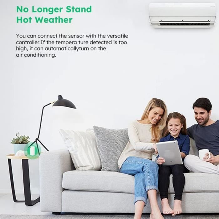 * Détection d'humidité : 0- RH Température de fonctionnement : -20 ℃ ~ +60 ℃. * Type sans fil : WiFi (2., 4G)/Zigbee * Paramètres du produit : DC3V LRO3., *Courant de repos : ≤ 10 uA. 【Stockage et exportation de données gratuits】 Le capteur d'humidité ambiante prend en charge l'exportation et le stockage des données. Gérez mieux votre vie quotidienne. Plage de température mesurable : -20 ~ +60 ℃ (-4 ⋅ ~ +140 ⋅), précision de mesure de la température : ± 1,0 ℃ (± 1,8 ℃). Tuya Wifi capteur d'humidité de la température hygromètre intérieur... Tuya – capteur intelligent WiFi Zigbee de température et d'humidité, thermomètre et hygromètre d'intérieur, surveillance, fonctionne avec Alexa Google Home Avec cet article, vous pouvez surveiller la chambre de bébé, la cave à vin et le garage. Parallèlement, il est compatible avec Alexa et Google Home. Avec des données historiques, vous pouvez mieux gérer la température et l'humidité de votre pièce. Il peut non seulement surveiller la température ambiante et l'humidité, mais il est également très pratique pour appliquer la mini pièce comme votre cave, cave à vin, boîte à cigares et serre, etc. Thermometre Wifi Thermomètre Hygromètre Wifi Tuya Wifi Température Et Capteur D'Humidité Hygromètre Intérieur Thermomètre Hygromètre WiFi Zigbee YUETTYY Zigbee Tuya Hygromètre Thermomètre Capteur WiFi et Détecteur d'humidité d'intérieur sans fil intelligent avec application Tuya Alarme de notification à distance pour serre domestique (4, : : AutresThermomètre hygromètre Plage de mesure de l'humidité : 10 % RH à 99 % HR - Précision de mesure de l'humidité : ± 5 % rel. *Piles : LRO3-1,5 V/AAA x 2 (non incluses). Connexion intelligente domestique : vous pouvez créer un lien intelligent domestique avec le moniteur de température et d'humidité pour allumer automatiquement vos appareils intelligents. Caractéristiques : * Dimensions : 70 x 24 x 19 mm. * Mode d'alarme : notification par application push Contenu de l'emballage : 1/2/4/6 thermohygromètre. Vous pouvez contrôler le capteur d'humidité avec votre téléphone lorsqu'il est connecté.