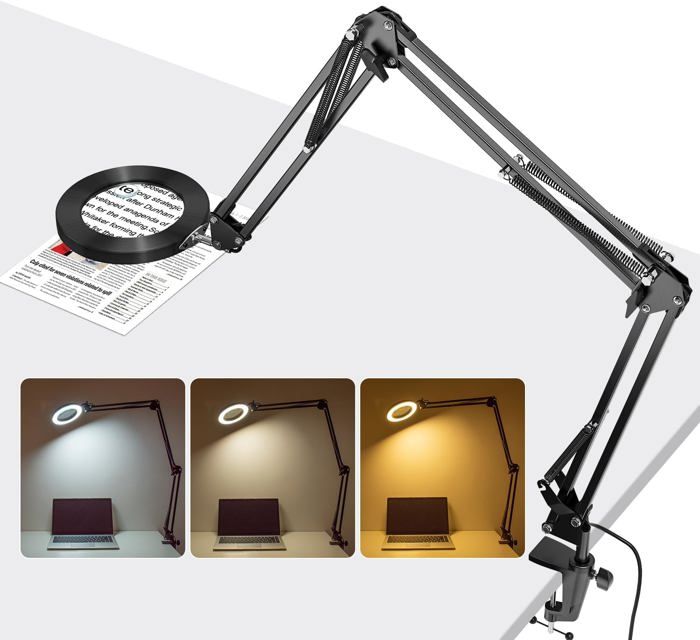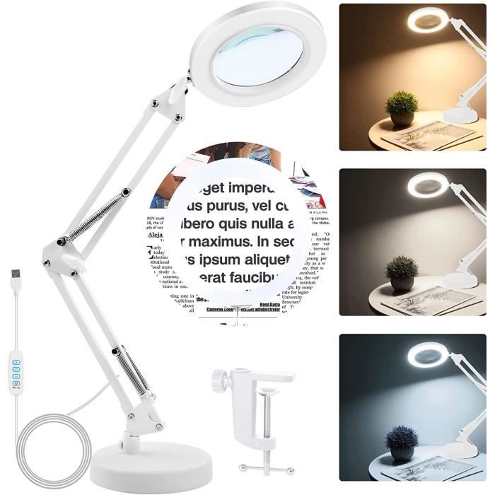 Chaque mode peut facilement régler le niveau de luminosité entre 10 % et 100 %, vous pouvez définir la luminosité la plus confortable. La loupe avec lumière est livrée avec 72 LED haute luminosité intégrées, la conception de l'anneau vous offre une lumière douce et uniforme et une grande zone d'éclairage. Les verres ne provoquent pas de vertiges, offrent un effet d'amplification parfait pour la fabrication manuelle, la couture, la lecture, la peinture, la couture, la manucure, la sculpture, la soudure et plus encore. Il est idéal pour les amateurs faits à la main, la lecture, la couture, la manucure, la fabrication de bijoux, la soudure, le point de croix, la gravure, la peinture, etc. Le grossissement 10x et 8x fournit une aide professionnelle pour les travailleurs en gros plan à long terme et les personnes ayant une faible vision. Kavolet Lampe loupe LED, Lampe de Bureau USB, Grossissement 8X, 10 Le bras pivotant peut être ajusté vers le haut et vers le bas et tourné à 360 degrés. La dureté de la loupe atteint 6,5H, assurant une meilleure résistance à l'usure et empêchant la lentille d'être rayée. Jubor 2-in-1 Lupe it Licht und Ständer, 15X 10X LED Lupenleuchte it... Loupe Avec Lumière Et Support, Lampe Loupe LED Jubor 10X 8X Avec Pince Lampe De Bureau Avec 3 Modes De Couleur A Intensite Variable Lampe Loupe Led Pour Loisirs Creatifs Lampe De Travail Lampe De Lecture Led 3 modes de couleur et 10 niveaux de luminosité : la loupe avec lumière dispose de 72 LED super lumineuses, 3 modes de couleur (blanc, chaud et froid) au choix. Cette loupe est livrée avec un câble USB, facile à connecter, prenant en charge la prise USB, l'ordinateur portable, l'alimentation mobile, le PC, etc. 3 modes de couleur et 10 niveaux de luminosité – La loupe avec support dispose de 72 LED super lumineuses, 3 modes de couleur (blanc, chaud et froid) au choix Grossissement 10x et 8x : la loupe avec lumière utilise une lentille optique haute résolution pour fournir une vue agrandie claire sans distorsion. La loupe peut être ajustée vers le haut et vers le bas à 225 degrés et tournée à 360 degrés. 3 Modes de Couleur et 10 Niveaux de Luminosité Alimentée par USB pour plus de commodité : la loupe avec lumière 3 couleurs est alimentée par USB, ce qui la rend plus pratique à utiliser.