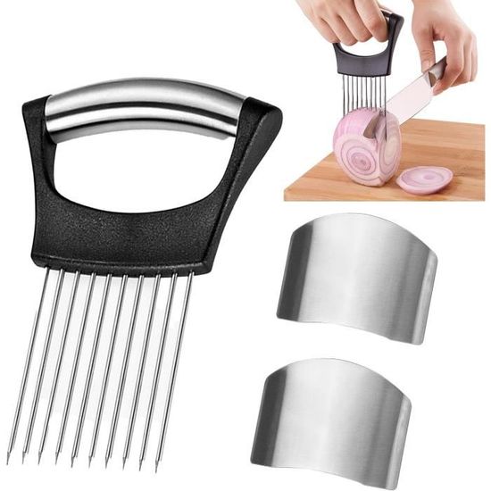 Sa forme ergonomique offre une prise en main facile et une manipulation confortable tandis que sa fonction antidérapante garantit une expérience de tranchage sécurisée. Confort ergonomique : tranchez les oignons sans effort avec notre porte-tranches d'oignon. Matériau fiable : construit en PP, et acier inoxydable résistants à l'usure, ce porte-tranches d'oignon garantit une utilisation à long terme sans rouille ni déformation, ce qui en fait un accessoire de cuisine fiable pour une coupe cohérente Support D'oignon, 2024 Nouveau Titulaire Trancheuse Oignon Vaste application : tranchez sans effort les oignons, la viande, les pommes de terre, les tomates et les citrons avec précision et facilité à l'aide de notre porte-tranches, vous faisant gagner un temps précieux dans la préparation des repas Je veux préparer des oignons en grande quantité. J'épluche tous les oignons que j'ai besoin pour faire mes recettes Découpe Oignon Support à Oignons Pour Viande Support De Coupe D'oignon En Acier Porte-tranche Oignon Acier Inox 1 Jeu Coupe-Légumes De Cuisine Trancheuse À Oignons Râpe Ail Et...