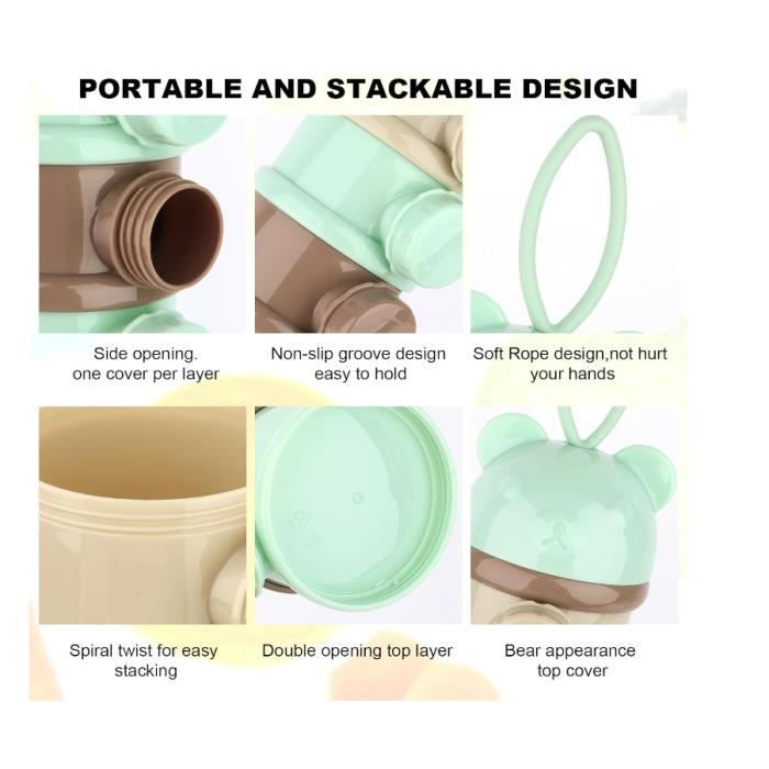 Il a une conception à quatre niveaux et des compartiments pouvant contenir suffisamment de poudre pour quatre tétées. Vous pouvez librement combiner les couleurs de chaque couche et les tordre en forme de spirale. Cela vous permet de préparer 270 ml de lait en une seule fois sans renverser ni mélanger la poudre. En raison de la mesure manuelle, il peut y avoir une tolérance dans la taille du produit. Description du produit Distributeur de lait en poudre - Bouteilles de lait de voyage pour le stockage des aliments ♥Stockage pratique : vous pouvez stocker non seulement du lait en poudre, mais également des collations, des fruits, des aliments solides, des sucettes et d'autres accessoires dans ce distributeur de lait maternisé. Le distributeur est facile à verser et peut également contenir des sucettes. La conception en forme d'entonnoir vous aide à infuser rapidement le lait en poudre et à s'adapter aux biberons de différents calibres. Spécification: Nom : distributeur de lait en poudre Matériau : résine de qualité alimentaire PP + silicone. Ne perdez plus de temps et de poudre, il suffit de verser et de partir. Distributeur 60g Par Couche BOITE DOSEUSE DE Lait En Poudre Empilable 100% Hermétique 4 Compartiments Ma... EUR 20,57 - FR Doseur Portable Doseur de lait en poudre AVENT-PHILIPS : Avis et comparateur de prix Il est également petit et léger, vous pouvez donc l'emporter partout où vous allez. Suavinex Doseur De Lait - Livraison partout en Algérie - Parapharmacie... Chaque couche peut contenir 60 g de lait en poudre et peut être combinée en une spirale à quatre niveaux. ♥Nettoyage sans tracas : pas besoin de lutter pour nettoyer ce distributeur de formule. Vous pouvez le nettoyer facilement ava-nt utilisation, en vous assurant qu'il est propre et solide pour l'alimentation. Doseur de lait funny friends de Bebeconfort sur allobébé Liste des packages : Distributeur de formule * 1 Remarques: En raison des effets d'éclairage et des angles de caméra, la couleur de l'article et celle montrée sur l'image peuvent avoir une nuance. Le distributeur de formule de voyage est un moyen pratique de stocker et de transporter la formule. Retirez simplement le couvercle et les compartiments et lavez-les facilement. Il est pratique et pratique pour les voyages ou l'utilisation quotidienne.