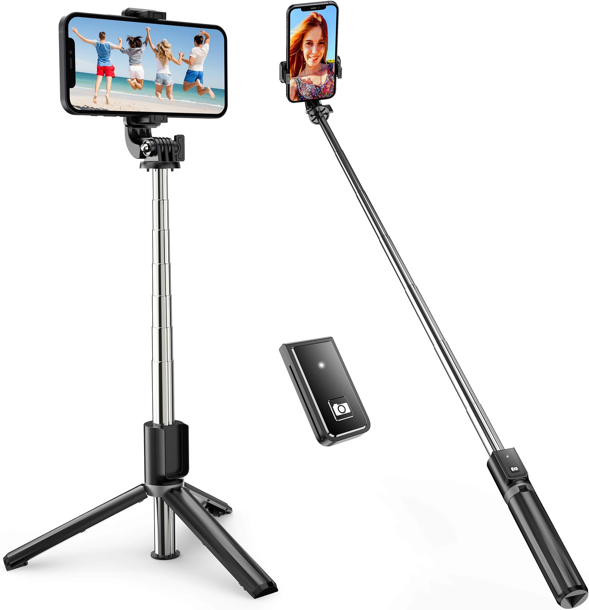 [ 3-en-1 Utilisation Polyvalente ] Cette pérche selfie est conçue pour de diverses applications. Clip en Silicone Antidérapant Doté d'un clip en silicone antidérapant, vous ne vous soucierez jamais de la tombée de votre appareil. Ce selfie stick peut-il être contrôlé à distance ? Oui, il est équipé d'un Bluetooth V5., 0 stable, vous pourrez prendre des photos/vidéos à distance de 10M sans aucun souci des déconnexions. [ Longueur Extensible & Angle Réglable ] Ce selfie stick atteint une longueur d'environ 150 cm lorsqu'il est déployé, de sorte que les selfies ou les photos de groupe ne posent aucun problème. Elle vous servira aussi d'un trépied. ATUMTEK Perché à Selfie, Selfie Stick Trépied Monopode Bluetooth De plus, son mode trépied vous libère les mains pour enregistrer des vidéos ou des diffusions en direct lorsque vous voyagez seul ou au travail. [ Télécommande Bluetooth Stable ] Ce trépied selfie stick est équipé d'un Bluetooth V5., 0 stable, ce qui vous permet de prendre des photos/vidéos à distance de 10M sans aucun souci des déconnexions. Hauteur et Angle Réglables ] Cette perche à selfie Bluetooth dispose de 4 niveaux de réglage de la hauteur, de 48 cm à 170 cm. La tête pivotante intégrée prend en charge une rotation du cou à 190° et une rotation à 360°, et peut s'incliner vers le haut, vers le bas et tirer verticalement Bâton à selfie rotatif intelligent extensible avec trépied et télécommande sans fil pour selfies de groupe, diffusion en direct et enregistrement vidéo / tous les téléphones portables - Chine Selfie Stick et Ce bâton de selfie contient-il des piles ? Oui, grâce à la batterie de CR1632/120 mAh, vous pourrez prendre 20 000 photos individuelles et avoir une meilleure expérience sans ennuis d'une mémoire pleine de temps en temps. La gamme d'étirement de ce clip est de 5,8-8,2 cm (téléphone + coque), qui convient aux smartphones de 4,7 à 6,1 pouces avec le système iOS (5., 0 et supérieur) et Android (4., 3 et supérieur). 3-en-1 Perche Selfie Multifonctionnelle: perche selfie innovant 3-en-1 adopte une conception stable et sûre sans inclinaison. En tant que monopode extensible, il peut vous aider à prendre des autoportraits. Après expansion, il est plus stable en tant que trépied Ce support tablette est compatible avec iPhone 16/ iPhone 16 Plus/ iPhone 16 Pro/ iPhone 16 Pro Max/ 15/ 14/ 13/ 12/ 11/ SE 2022/ SE 2020/ X/ XR, etc. Son état original et extensible vous permet de prendre des selfies ou des photos de groupe avec votre famille et vos amis. Idéal pour Toute Occasion [ Large Compatibilité ] Doté d'un clip avec une gamme d'étirement de 5,8-8,2 cm (téléphone + coque), ce trépied de téléphone amélioré convient aux smartphones de 4,7 à 6,1 pouces avec le système iOS (5., 0 et supérieur) et Android (4., 0 et supérieur), compatible avec iPhone Séries, Galaxy Séries, Redmi Séries, HUAWEI Séries, etc.