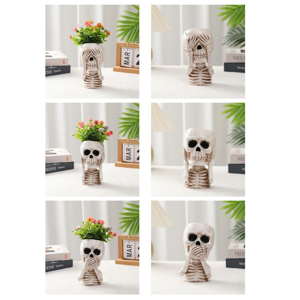 Matériau en résine durable : le pot de fleurs en forme de tête de mort est fabriqué en résine respectueuse de l'environnement, conception réaliste, solide et résistante à l'usure. Pot de fleurs durable : fabriqué en résine de haute qualité, le pot de fleurs en forme de tête de mort est durable et stable et peut vous servir longtemps Vous pouvez faire pousser des fleurs, de l'herbe ou d'autres plantes. Stable et solide : notre pot de fleurs en forme de tête de mort est fabriqué en résine de haute qualité, respectueuse de l'environnement, durable et très résistante à l'usure. Vous allez certainement adorer ce nouveau cadeau. Pot En Forme De Tête De Mort Pour Plantes Succulentes Tixiyu Pot De Fleurs En Résine En Forme De Tête De Mort - Pot De Fleurs Gothique Pour Plantes Grasses - Décoration Pour La Maison Et Le Bureau Pot De Plante Décoratif Gothique : ce bol à bonbons en forme de crâne joliment sculpté est idéal pour la décoration de la maison, Halloween, les fêtes à thème gothique, etc. Décoration gothique : ce pot de fleurs en forme de tête de mort magnifiquement sculpté convient à la décoration de la maison, à la décoration d'Halloween, à la décoration de fête à thème gothique, etc. Merveilleux cadeau de Noël : notre pot de fleurs squelette en résine est le cadeau parfait pour la famille, les amis et les collègues pour Halloween, Pâques et autres vacances. Une idée de cadeau parfaite pour Halloween, Pâques et autres fêtes. Maceteros Decorativos Lot de 3 pots de fleurs en céramique pour plantes Nom : pot de fleurs en résine crâne Matériau : résine Dimensions : 3 x 3,6 x 3,2 pouces / 2,4 x 3,2 x 3,2 pouces / 2,6 x 3,2 x 3,2 pouces Contenu : 1 pot de fleurs en résine en forme de crâne Pot Créatif En Forme de Vache pour Plantes Succulentes D'animaux...