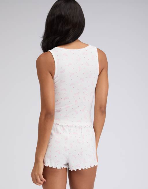 Pyjama été Léger Pyjama Court Avec Coeur - Saint Valentin - Rouge/blanc - - 10.00 Pyjama Blanc Léger Top col haut manches longues blanc | 3 Suisses Pyjama noir Impériale | 3 Suisses 100% Coton, Manche courte Hunkemöller MISTLETOE - Pyjama bottoms - white - Zalando