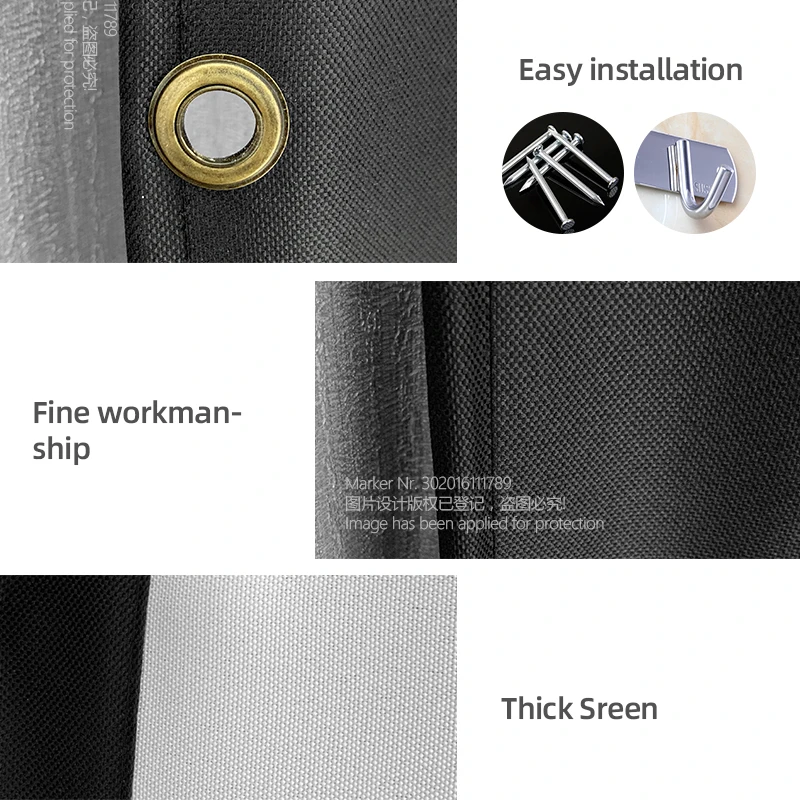 Écran de projection avec de dos noir] Fabriqué en tissu polyester, cet écran du projecteur est conçu pour être blanc à l'avant, noir à l'arrière, cette technologie unique permet de réduire l'influence de la lumière ambiante Format d'écran 16: 9 HD. écran Lavable Écran De Projection 180 Pouces Pour Videoprojecteur Avec Support Réglable Écran Projecteur Fond Blanc Portable Extérieur Intérieur Home Cinema Screen Projector - 180 Pouces Format 16:9 Polyester Avec une faible transmission de la lumière sur la surface de l'écran, vous pouvez obtenir une image plus claire et plus lumineuse. Veuillez sécher les trous métalliques après le lavage pour éviter qu'il ne rouille. S'il y a des plis lors du déballage, vous pouvez tirer l'écran vers le haut ou le fixer à un cadre, les plis disparaîtront en quelques jours et il sera apparaître l'image clairemrnt. Écran De Projecteur Portable Écran De Projecteur 16:9 Résistant Aux... écran De Projection Mobile Écran Projection 180 Pouces 16:9 - Support Inclus - HD 4K - Pliable Portable - Sac Transport - Home Cinéma/Extérieur écran Projecteur Intérieur Extérieur 【Angle de vision 160°】Angle de vision 160° permet aux gens de s'asseoir à différents endroits pour voir l'écran. 【Lavable】L'écran du projecteur lavable peut être lavé à la main. Convient uniquement pour la projection frontale.