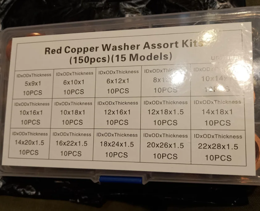 Quels sont les avantages de nos joints d'étanchéité en cuivre ? 1., Les joints d'étanchéité pour bouchon de vidange d'huile sont fabriqués en cuivre de haute qualité, sont durables et offrent une longue durée de vie., 2., Ces joints d'étanchéité en cuivre offrent une bonne conductivité électrique et thermique, une surface lisse et réduisent les frottements entre les fixations., 3., Les joints d'étanchéité pour bouchon de vidange d'huile en cuivre conviennent aux bouchons de réservoir d'huile, ainsi qu'aux accessoires d'eau, de carburant et hydrauliques., 4., Les rondelles d'étanchéité plates en cuivre conviennent à tous les types de moteurs, par exemple Par exemple, pour voitures, bateaux, générateurs et machines. Lot de 200 rondelles métalliques et joints de vidange en cuivre - pour joints d'étanchéité - kit combiné de 9 tailles (M5, M6, M8, M10, M12, M14 La couleur peut légèrement différer de l'image en ligne en raison des paramètres de couleur de votre écran. S'assurer que la surface des pièces est plane et propre et que le joint d'étanchéité est intact. Quantité suffisante, adaptée à divers environnements et à une utilisation à long terme. Joint Vidange Voiture 200 Pcs Cuivre Joint D'étanchéité Joint Rondelles Anneau Plat Bouchon De Vidange Joint Joint Joint Ensemble De Réparation De Voiture Accessoires Rondelles étanchéité M16 16x22x1.5mm Cuivre Veuillez vous référer au produit réel. Largement utilisé : Convient aux appareils électroménagers et commerciaux, aux instruments de précision, aux automobiles, aux navires, aux roulements, aux pompes à air, aux pompes à eau, aux vannes, aux cylindres, aux canalisations, aux systèmes hydrauliques et autres équipements. Contenu de la livraison : assortiment de 30 joints d'étanchéité en cuivre (diamètre intérieur : 16 mm, diamètre extérieur : 22 mm, épaisseur : 1., 5 mm). Matériau de qualité : Cet assortiment de joints d'étanchéité en cuivre est fabriqué en cuivre de haute qualité, offrant une bonne conductivité électrique et thermique, une résistance à la casse et une durabilité accrue. Rantecks 200PCS Rondelles en Cuivre Assortiment Kit Joint rondelle Application : Placer le joint de bouchon de vidange d'huile entre les pièces à sceller. RONDELLE CUIVRE JOINT 9 Types Moteur 200Pcs Outils à Main Portable...