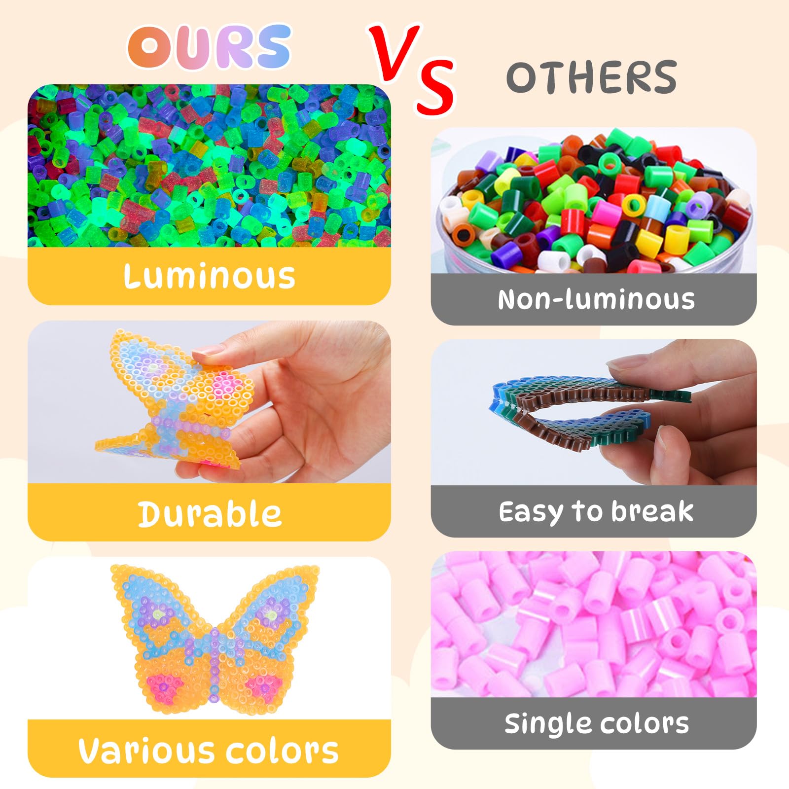 Les perles à repasser VYYTYYA sont idéales pour les enfants créatifs dès 6 ans. Avec 3200 pièces et 7 couleurs vibrantes, ces perles offrent des heures de plaisir DIY Ces perles à repasser lumineuses emmagasinent l'énergie solaire et diffusent une lueur sans piles, accentuant leur visibilité nocturne et leur attrait esthétique Perle A Repasser Rouge SURENHAP Perles à Fusibles à Eau Bricolage Kit De Perles Fusibles à Eau éducatif 15 Couleurs Perles à Repasser Spécifications : Nom du produit : Perles phosphorescentes Dimensions : 23 × 16 cm (9,06 × 6,30 pouces) Taille des perles : 5 mm Couleurs : 7 couleurs (violet, rose, blanc, jaune, vert, bleu, orange) Avertissement : 1., Les perles ne sont pas comestibles. [Taille 5 mm pour Petites Mains] Faciles à manipuler et à empiler, elles aident les enfants à créer aisément des motifs précis. Adapté aux passionnés de loisirs créatifs, c'est aussi une excellente récompense à offrir à la maison, à l'école ou en colonie pour stimuler le plaisir et la créativité des enfants Perles à fusibles, 2400 pièces en 24 couleurs Kit de perles à fusibles... Activités manuelles enfants : + de 700 Tutos DIY Enfants - Loisirs [Perles Lumineuses] Se rechargent au soleil et brillent toute la nuit ! [Couleurs Multiples, Créations Illimitées] e perles kit contient 7 couleurs populaires (violet, rose, blanc, jaune, vert, bleu, orange). Risque d’étouffement, ne pas avaler., 2., La température du repassage doit être comprise entre 120 et 140°C pour éviter que les perles fondent complètement, ce qui pourrait nuire à l’esthétique du motif., 3., Le repassage doit être réalisé exclusivement par un adulte, avec prudence afin d’éviter tout risque de brûlure.