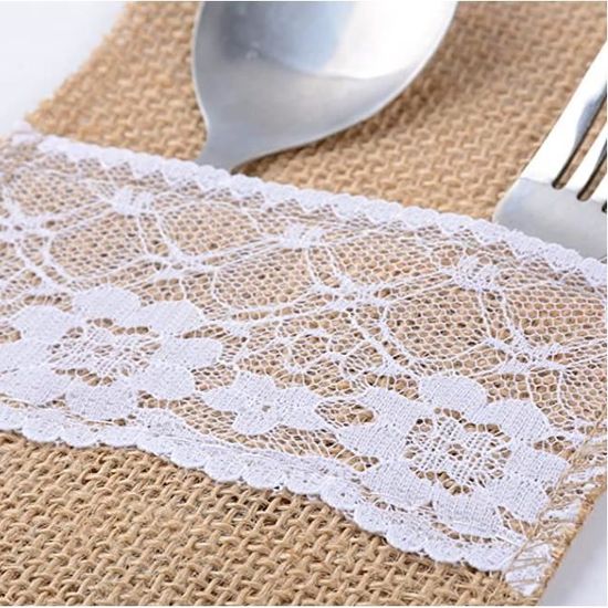 Pochette de vaisselle en Jute, pochette en dentelle pour couverts, couteau, fourchette, rustique pour décoration de mariage, décoration de maison pour la saint-valentin Sacs à Couverts Porte Couverts En Toile De Jute - Event Lot De 10 Sachets Astuce: il est normal que le produit que vous recevez dégage une certaine odeur et il est recommandé de passer un peu de temps au soleil avant de l'utiliser pour éliminer l'odeur. Taille: 11 cm X21 cm Quantité: 10 Contenu de l'emballage: Sac en dentelle de jute de 10 pièces Idéal pour les mariages, baby showers, Noël, fêtes de famille ou autres événements. Liste d'emballage: vous recevrez 10 PCS sac en dentelle de jute, idéal pour stocker des couteaux, des fourchettes, des cuillères et d'autres ustensiles. Notre ensemble de sacs à couverts en jute sont parfaits pour les mariages, les fêtes de fiançailles, les baby shower, les pique-niques, les réceptions, les douches nuptiales, les sacs de fête, les anniversaires et même pour les décorations de Noël Dimensions: 11 cm x 21 cm chaque sac en dentelle de jute peut facilement contenir un couteau, une fourchette et une cuillère à dessert. Parfait pour un mariage, une fête prénatale, une fête d'anniversaire, une fête prénuptiale, une réception, une cérémonie, des vacances, une célébration, comme cadeau, etc Champ d'application: idéal pour les mariages, les douches nuptiales, les fêtes, les anniversaires, les festivals, Noël, etc. En raison de la différence de moniteur, la couleur réelle et la couleur de l'image sont légèrement différentes.