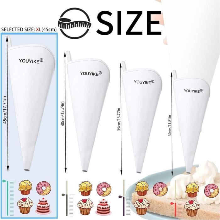 Bocchette Sac A Poche Kit Pâtisserie 48 Pièces - 31 Douilles + 10 Poches Jetables + Accessoires - Pour Décorations Gâteaux Poche A Douille Jetable Poche A Douille Patisserie Professionnelle Poche à Douille Réutilisable Lot De 3 Poches U00e0 Douille, Poches U00e0 Douille En Plusieurs Tailles, S, Matériau En Coton Pour Décorer Pâtisseries, Gâteaux, Biscuits - Maison Créativité sans limites : avec nos 8 douilles polyvalentes, vous pouvez laisser libre cours à votre créativité et décorer et remplir de manière créative les gâteaux, muffins, biscuits et autres pâtisseries comme Berliner et pâtisseries. Spécifications: Matériau : acier inoxydable 304., Couleur : argenté. Contenu : 1 x emporte-pièce. Lot de 2 Poches à Douille Premium en Coton avec 13 pièces, Douilles en Inox, Sac à Poche de 40 cm, Lavable au Lave-vaisselle et Réutilisable | Kit de Pâtisserie pour la Décoration de Gâteaux Kit de pâtisserie de qualité supérieure : 7 grandes douilles, 2 grandes poches passepoilées en coton (30 cm, 35 cm) avec revêtement intérieur supplémentaire, 2 adaptateurs, 2 brosses de nettoyage, 2 pinces pour poche à douille pour tous les types de décorations de pâtisseries. Kit de démarrage de qualité supérieure 7 grandes douilles à douille, 2 grands sacs en coton (30 cm, 35 cm) avec revêtement intérieur supplémentaire, 2 adaptateurs, 2 brosses de nettoyage, 2 pinces à douille pour tous les types de décorations de pâtisserie Longue durée de vie : sac à passepoil en coton imperméable de haute qualité, stable, durable, buse en acier inoxydable 304 de haute qualité, antirouille, réutilisable, sans odeur et non toxique, professionnelle, durable, longue durée de vie. Dimensions (L x l x épaisseur) : environ 40 x 23 cm.