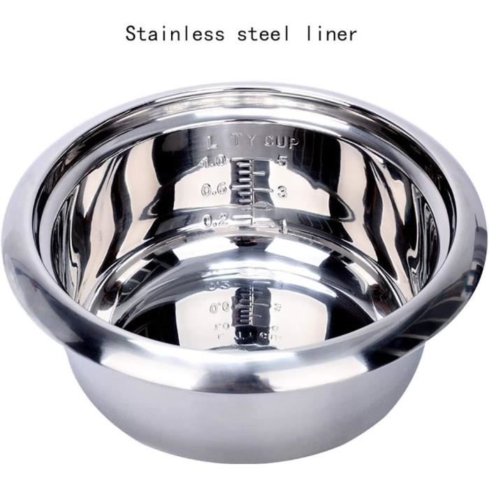 CUCKOO SR-4600 CUISEUR À RIZ NOIR, ACIER INOXYDABLE 4,6 L - Electroménager Facile à nettoyer : la surface lisse de la doublure en acier inoxydable facilite le nettoyage, vous faisant gagner du temps dans , pot intérieur de cuiseur à riz, accessoires d'autocuiseur Accessoire Cuiseur Riz Sans Revêtement CUCKOO SR-4600 CUISEUR À RIZ NOIR, ACIER INOXYDABLE 4,6 L - Electroménager Remplacement Cuve Cuiseur Riz -Répartition efficace de la chaleur : la construction en acier inoxydable offre une excellente répartition de la chaleur, garantissant que vos aliments sont cuits uniformément. Conception sûre : la surface non revêtue ne libère aucun produit chimique nocif dans vos aliments, favorisant une expérience de cuisson plus saine, pot intérieur de remplacement, revêtement de cuisinière Construction : fabriqué en acier inoxydable, ce pot intérieur est un pot de cuisson intérieur en acier inoxydable, pot de cuisson intérieur Compatibilité simple : ce bol intérieur de remplacement s'adapte parfaitement à la plupart des cuiseurs à riz, ce qui en fait une casserole intérieure de cuiseur pratique pour la mise à niveau et le remplacement des anciennes unités, une casserole intérieure pour la cuisine à la maison, une marmite à riz pour un usage domestique Cuiseur à riz 2,8L - 1000W - ARTHUR MARTIN Cuiseur à riz à pot intérieur en acier inoxydable Ce pot intérieur est non seulement fonctionnel mais aussi esthétique, avec sa finition lisse et brillante. Surface de cuisson sûre : la conception sans revêtement ne libère aucune substance nocive dans vos aliments, favorisant un environnement de cuisson plus sûr, bol de cuiseur à riz, pot intérieur en alliage d'aluminium - et sain : la conception sans revêtement élimine le risque de contamination de vos aliments par des produits chimiques nocifs, garantissant ainsi un environnement de cuisson intérieur sain.