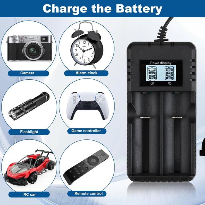 Il est compatible avec les batteries 18650 / 17670 / 14500 / 16340., Multiples fonctionnalités de protection: Le chargeur est équipé d'un circuit dédié de gestion de charge et de décharge intégrant de multiples fonctionnalités de sécurité. Il est compatible avec les batteries 18650 / 17670 / 14500 / 16340., Compatibilité Universelle: Le chargeur est conçu pour charger divers types de batteries lithium cylindriques de 3,7V avec un courant continu. Il prévient efficacement la charge inversée, les courts-circuits, la surcharge, la décharge excessive et les surintensités, garantissant une utilisation sûre du produit. Chargeur pour batterie 48V 13S Lithium E-bike et E-scooter avec connecteur XLR Il détecte automatiquement le niveau de la batterie, affiche la progression de la charge et arrête la charge une fois la batterie complètement chargée. CABLE USB CHARGEUR Batterie DC 4.17-4.2V Simple pour 16340 14500 26650 3.7V - EUR 5,38. À VENDRE! Ressort télescopique. Modèles de batteries compatibles : pour 10400 14500 16340 16650 406573325408 Chargeur Batterie Imren 21700 Chargeur 18650 Chargeur De Batterie Universel 18350 17670 3,7 V Li-Ion NI-MH - B Chargeur Accu 18650 Le chargeur de batterie universel Smart est conçu pour charger une large gamme de batteries rechargeables, y compris les modèles 18650, 18500, 18350, 17670, 17500, 16340, 14500, 10440, 20700, 21700, 22650 et 26650, ainsi que les piles AAA et AA