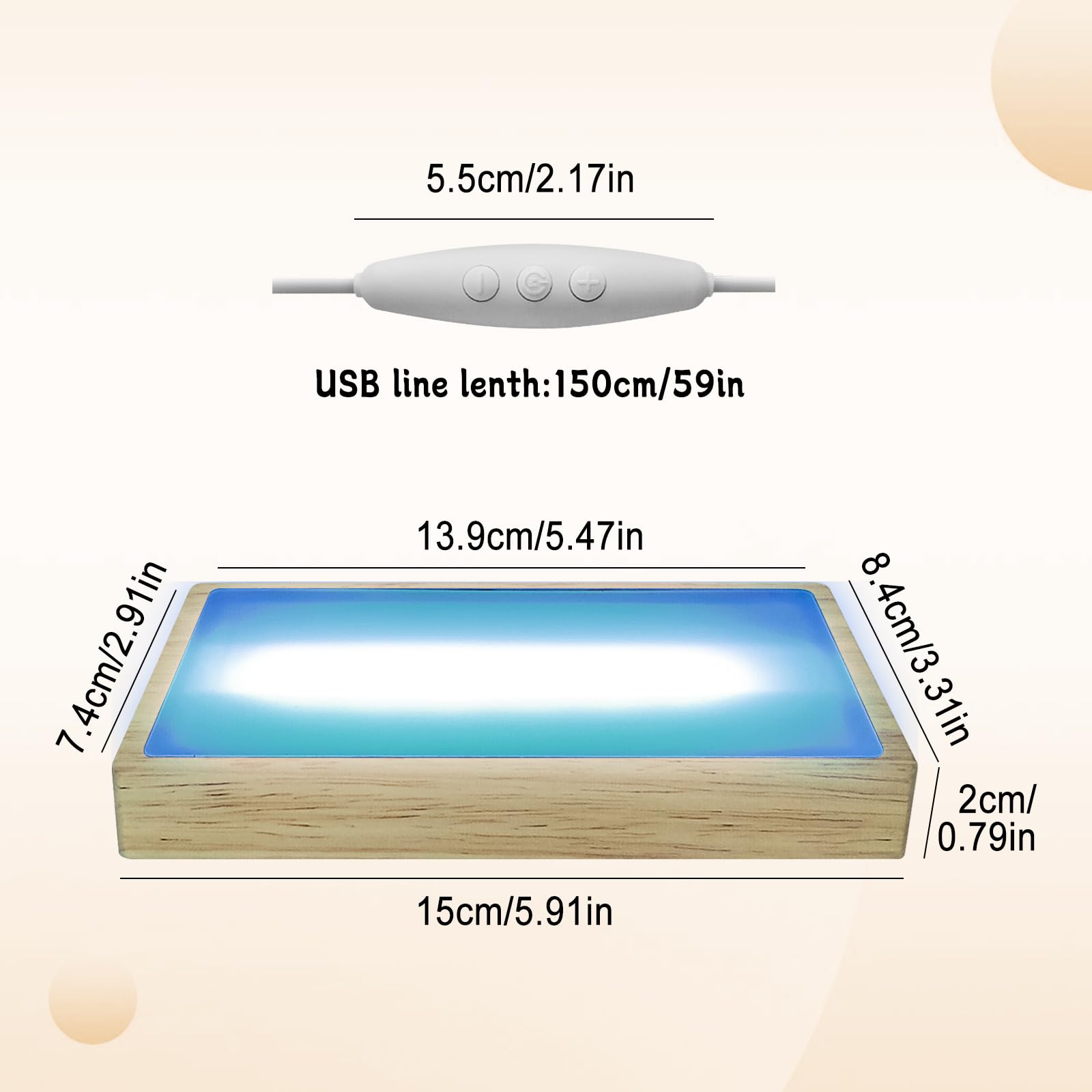 Lumière tricolore et luminosité réglable : cette base de lumière LED rectangulaire dispose d'un variateur intégré, qui peut facilement régler 3 couleurs de lumière (lumière chaude, lumière naturelle, lumière blanche) et choisir différents niveaux de luminosité, lumière ambiante douce et haute luminosité pour différents scénarios d'utilisation. Suspension à intensité variable 'Venora' pour salon & salle à manger Mode de commutation : interrupteur à bouton., Alimentation : USB. Matériau en bois de haute qualité : la belle lampe d'affichage en cristal en bois est fabriquée en bois naturel de qualité, qui est durable, beau et lisse, créant une impression visuelle simple et unique. Il y a un interrupteur sur le cordon d'alimentation, avec différents boutons. Alimentation USB : illuminez votre espace sans effort avec le câble USB inclus. Plaque intermédiaire : 14 x 7,4 cm. Plafonnier à intensité variable 'Nerys' en bois pour salon & salle à manger Les lampes LED lumineuses affichent une belle statue en cristal et créent une atmosphère romantique. Application : convient pour exposer vos œuvres d'art en verre, telles que des statues de méduse, des statues en cristal, de l'acrylique, des bijoux et d'autres articles. Caractéristique et fonction : la surface supérieure de la base lumineuse est plate, ne peut pas contenir de boule, adaptée pour les objets colonnaires, les blocs de cristal 3D ou l'art en résine. Ruban solaire à intensité variable LED/1,2W/3,7V 3000K IP67 5m Plateau Tournant Electrique Étagère D'affichage En Cristal Papillon,support En Bois,décoration D'angle,porte-bijoux Mural éclairage Pour Sculpture Cristal Longueur du câble : 1,5 m