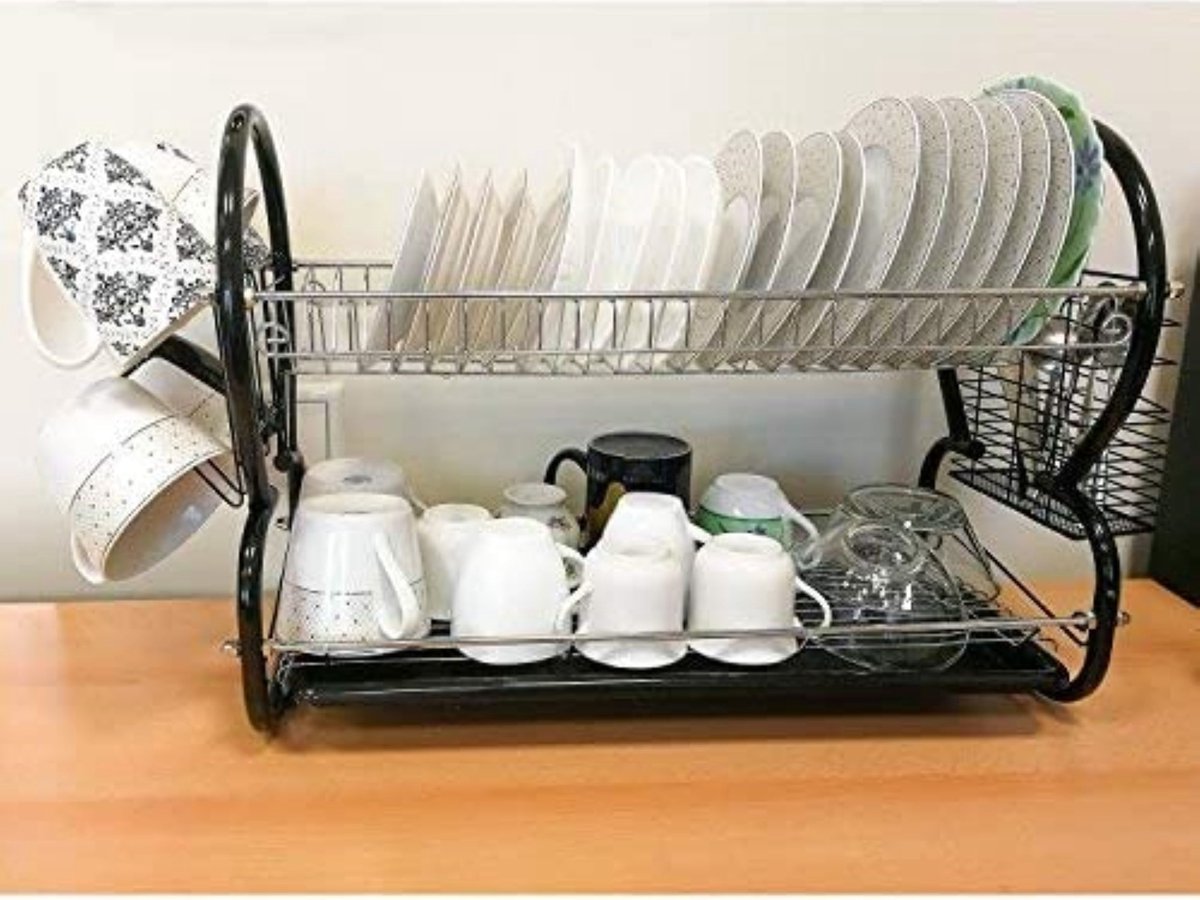 Égouttoir à Vaisselle à 2 Niveaux, Blanc Avec Plateau D'égouttement
