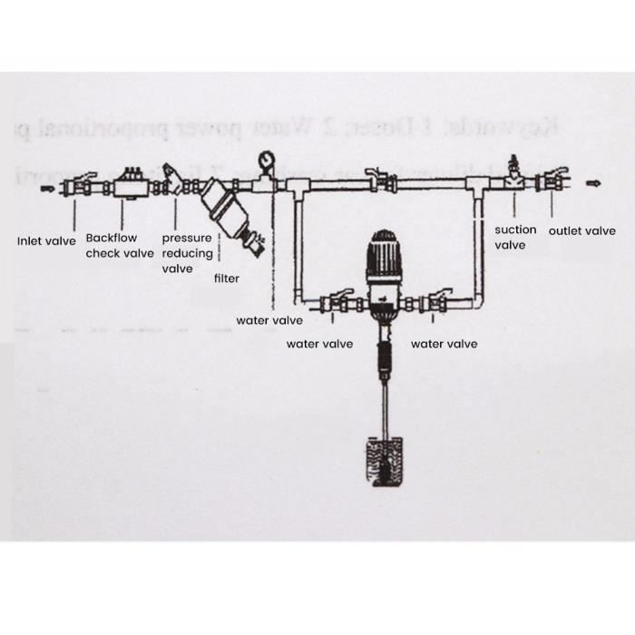 L'opération est simple et facile à apprendre. Injecteur d'engrais à filetage femelle G3/4, pompe proportionnelle hybride automatique 1:100-1:10, pompe doseuse réglable à eau 20L/H-2500L/H, pour irrigation agricole de jardin Caractéristiques : Type d'article: Pompe à engrais Pompe doseuse à eau Modèle : R2510., Matériau : plastique. Utilisations : irrigation agricole, entretien des équipements, horticulture et fleurs, élevage, et traitement de l'eau, lavage de voitures, mousse, transformation des aliments, hygiène industrielle, impression et autres industries nécessitant une dilution constante. Fonction du produit: Directement installé sur le pipeline d'alimentation en eau, avec la pression de l'eau agissant comme la puissance, sans le besoin de puissance ou de démarrage du moteur. Pompe Doseuse Engrais Irrigation Injecteur D'engrais à Filetage Femelle G3/4, Pompe Proportionnelle Hybride Automatique 1:100-1:10, Pompe Doseuse Réglable à Eau 20L/H-2500L/H, Pour Irrigation Agricole De Jardin Doseur Engrais Débit 20-2500L/h Spécifications applicables: Connecté aux tuyaux filetés femelles G3/4 Plage d'échelle : 1-10 % (1:100-1:10) Plage de débit : 20 L/H-2500 l/h. Dosage quantitatif complet et fonction de mélange: injection proportionnelle continue. Suivi et réglage proportionnels précis ; Dilution uniforme automatique. Pression de l'eau de travail: 0., 2-0., 6BAR (kg) Entrée et sortie : 25 mm., Fonctionnement continu : 100T. Injecteur d'engrais d'irrigation Kit de dispositif d'irrigation de Principaux domaines d'application., 2., Élevage : médicaments médicaux prescrits pour le bétail et la volaille tels que les poulets, les canards, les vaches, les porcs, etc., 3., Domaines industriels: traitement de l'eau, génie chimique, traitement des métaux, protection incendie, etc., 4., Dilution constante de solvants spéciaux tels que les solvants désodorisants, les solvants de refroidissement, les solvants lubrifiants, etc., 5., Industrie de lavage de voitures, industrie de l'imprimerie, hôpitaux, industrie des alcools et d'autres industries. Puissance hydraulique efficace] En utilisant l'eau de pression fluide comme source d'alimentation, cet injecteur minimise la perte de pression de l'eau et élimine le besoin de réglages de puissance supplémentaires
