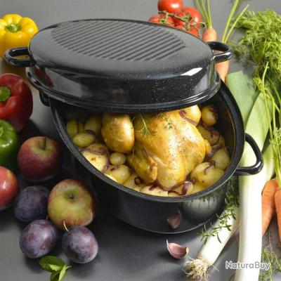 Tout type de cuisson : gaz, plaques vitro-céramiques, induction, solaire , Grande contenance Marmite de couleur noire en acier émaillé d’une capacité de 3,5L. Spécificités Capacité : 3,5L Poids : 1 kg / Poids du colis : 1,3 kg Dimensions avec couvercle : 28 x 28 x 14cm Cocotte Cookut 33 Cm Cocotte Roaster 38 Cm Acier émaillé Baumalu - 3216383839558 - Avis Et Prix | Mathon Cocotte Cookup Xl Induction Roaster / cocotte à enfourner 46x31cm - Maison Marmite de couleur noire en acier émaillé d’une capacité de 3,5L. Fabriquée avec un revêtement intérieur céramique pour éviter que les aliments n’attachent, la COCOTTE COOKUP vous permet une cuisson plus saine et savoureuse Cocotte Roaster + Livre de recette – Grand format - Graniteware