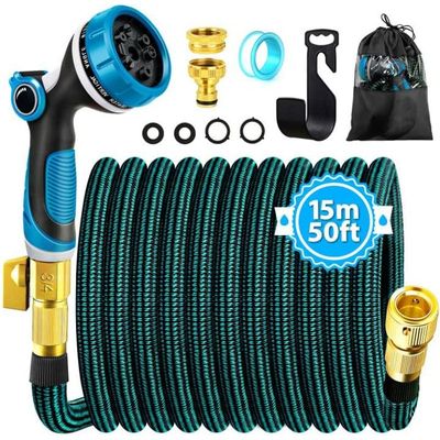 Ce sac vous permettra aussi de prendre ce tuyau partout avec vous ! Tuyau d'arrosage - INNOVAGOODS - Extensible 15 m - 7 jets - Sac de transport - Adaptateurs inclus - Jardin VOUNOT Tuyau d’Arrosage Extensible 15m avec Accessoires vert | Bricomarché Il est conçu pour une utilisation longue durée aussi bien à l'intérieur qu'à l'extérieur. LONGUE DURÉE : Notre tuyau d'arrosage est fabriqué en latex naturel de qualité et couvert par un tissu polyester épais qui garantit une grande résistance aux torsions et aux fuites. Le tuyau d'arrosage extensible renforcé VOUNOT® de 15 mètres est conçu pour offrir une flexibilité et une durabilité exceptionnelles. Fabriqué en latex naturel et en tissu polyester épais, il est étanche et résistant aux chocs, idéal pour une utilisation prolongée à l'extérieur De plus, il existe 8 modes différents de pulvérisation qui impactera le niveau du jet d’eau et qui vous permettra une utilisation multiple du simple arrosage de plantes, au nettoyage du sol tout en passant en un clic au nettoyage de voiture ou même de votre animal de compagnie. DESIGN EXTENSIBLE : Notre tuyau extensible possède un design innovant conçu pour s'étendre jusqu'à 3 fois sa longueur d'origine sans s'emmêler ou se tortiller tout en reprenant sa forme initiale lorsqu'il n'est plus utilisé. Enrouleur Tuyau Arrosage Tuyau D'arrosage Extensible - 4 Couches De Latex - 3 Fois - Flexible Tuyau D'arrosage 15m