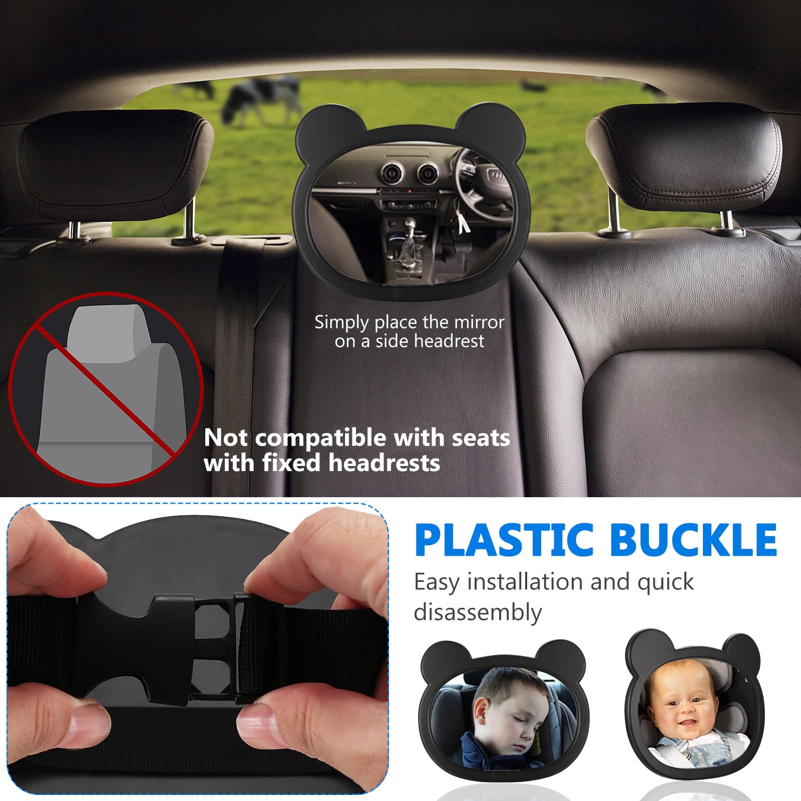 Caractéristiques du produit: Dimensions : 17 cm x 12 cm Matériau : résistant et incassable, sans BPA ni substances toxiques Compatibilité : Convient à tous les types de voitures et sièges auto Système de fixation : Sangle réglable avec boucle sécurisée pour un ajustement facile et stable Poids léger : Design ergonomique sans surcharge pour le rétroviseur intérieur Avantages clés : Visibilité optimale depuis le siège conducteur Anti-vibrations pour une image stable même sur routes accidentées Installation en quelques secondes sans outils requis Le rétroviseur est un accessoire quasi-indispensable pour conserver un œil sur votre bébé lorsqu'il est installé dans en position dos à la route. Découvrez notre sélection des meilleures marques et des meilleurs rétroviseurs bébé pour garder un œil sur votre bébé lors de vos trajets en voiture 【Installation facile et ajustable sans encombrement】Grâce à sa sangle à boucle réglable, ce retroviseur siège auto bébé s'adapte à tous les modèles de véhicules. Conçu pour toutes les voitures, il réduit le stress au volant. Évitez les caméras voiture bébé coûteuses : ce miroir économique et fiable est la solution parfaite pour garder le contact visuel avec votre petit passager. Dos Route VIVIDRISE Miroir Voiture Bébé, Retroviseur Siege Voiture Bébé Avec Sangle à Boucle Réglable, Incassable Automobile Bébé Retroviseur Pour Convient à Tous Les Sièges Arrière De Automobile Miroir Voiture Bebe 【Sécurité et confort pour votre enfant】Fabriqué en matériaux non toxiques et résistants, ce miroir voiture bébé rétroviseur garantit la protection de votre nouveau-né ou enfant. Son angle réglable permet une visualisation parfaite de votre enfant, que ce soit pour un miroir siège auto bébé arrière ou une position latérale. 【Solution idéale pour voyages sereins】Que ce soit pour les courses ou les vacances, ce rétroviseur intérieur voiture bébé offre une tranquillité d'esprit aux parents. Sa conception robuste évite les vibrations, assurant une image stable même sur routes accidentées. Rétroviseur Bébé Voiture 360° - Miroir Siège Enfant Sécurité Conducteur Miroir Siège Auto Enfant 360 Idéal pour les trajets quotidiens ou les longs voyages, ce miroir auto bébé offre une visibilité optimale depuis le siège arrière. Rétroviseur de siège arrière | 360° rotatif pour une visualisation...