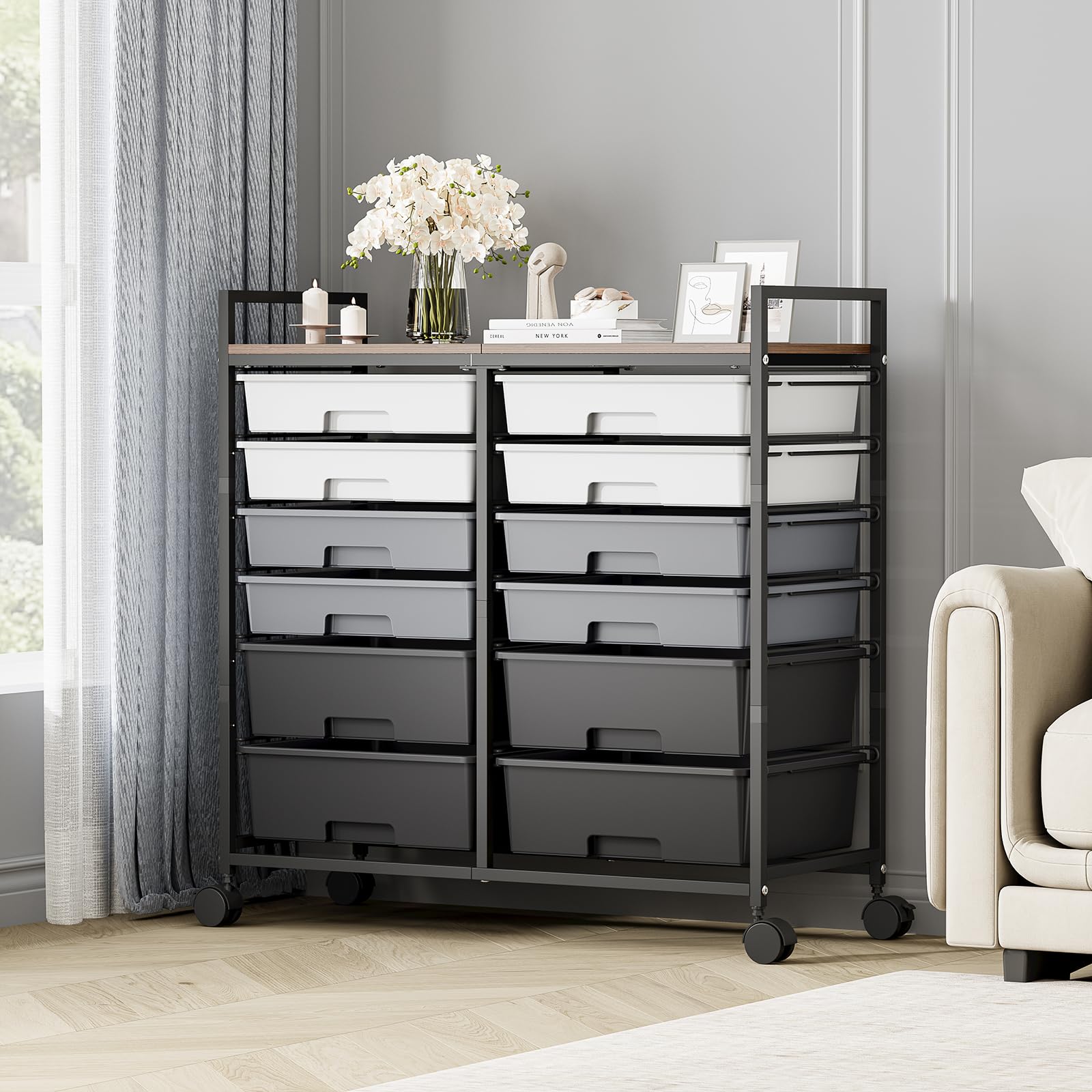 Chariot de Rangement 12 Tiroirs, 64 x 38 x 75 CM, Tour de Rangement à roulettes, Cadre en Acier, pour Chambre, Coloré A | Leroy Merlin Chariot Avec Plan De Travail COSTWAY Chariot De Rangement à Roulette 12 Tiroirs En PP, Tour De Rangement Avec Tablette, Cadre En Métal, Desserte Meuble Tiroir Pour Cuisine, Salle De Bain, École, 64x38x75cm(Noir Organisation Bureau Cuisine Cette caractéristique en fait un partenaire fiable pour les charges lourdes dans les chambres d'enfants, les appartements d'étudiants ou les salles de bricolage. Les dimensions de 76,7 cm de long, 31,6 cm de large et 77 cm de hauteur permettent une utilisation efficace de l'espace et s'adaptent à de nombreuses pièces. Que ce soit dans la chambre à coucher, le bureau, le placard ou la salle de bricolage, ce meuble à roulettes vous permet de ranger et de bien organiser. Chariot à roulettes pour bac de préparation Drive 70 L Elle peut être facilement positionnée et fixée à n'importe quel endroit souhaité, ce qui en fait un compagnon indispensable dans les ateliers et les salons. Yaheetech Desserte à roulettes Chariot de Rangeent avec 10 Tiroirs... Construction durable et stable : le meuble à roulettes est fabriqué à partir de matériaux de qualité supérieure et dispose d'un cadre inoxydable qui assure une stabilité à long terme. Organisation facile grâce aux tiroirs colorés : les tiroirs en plastique aux couleurs variées de ce conteneur à roulettes aident à organiser et donnent à chaque pièce une touche de fraîcheur.