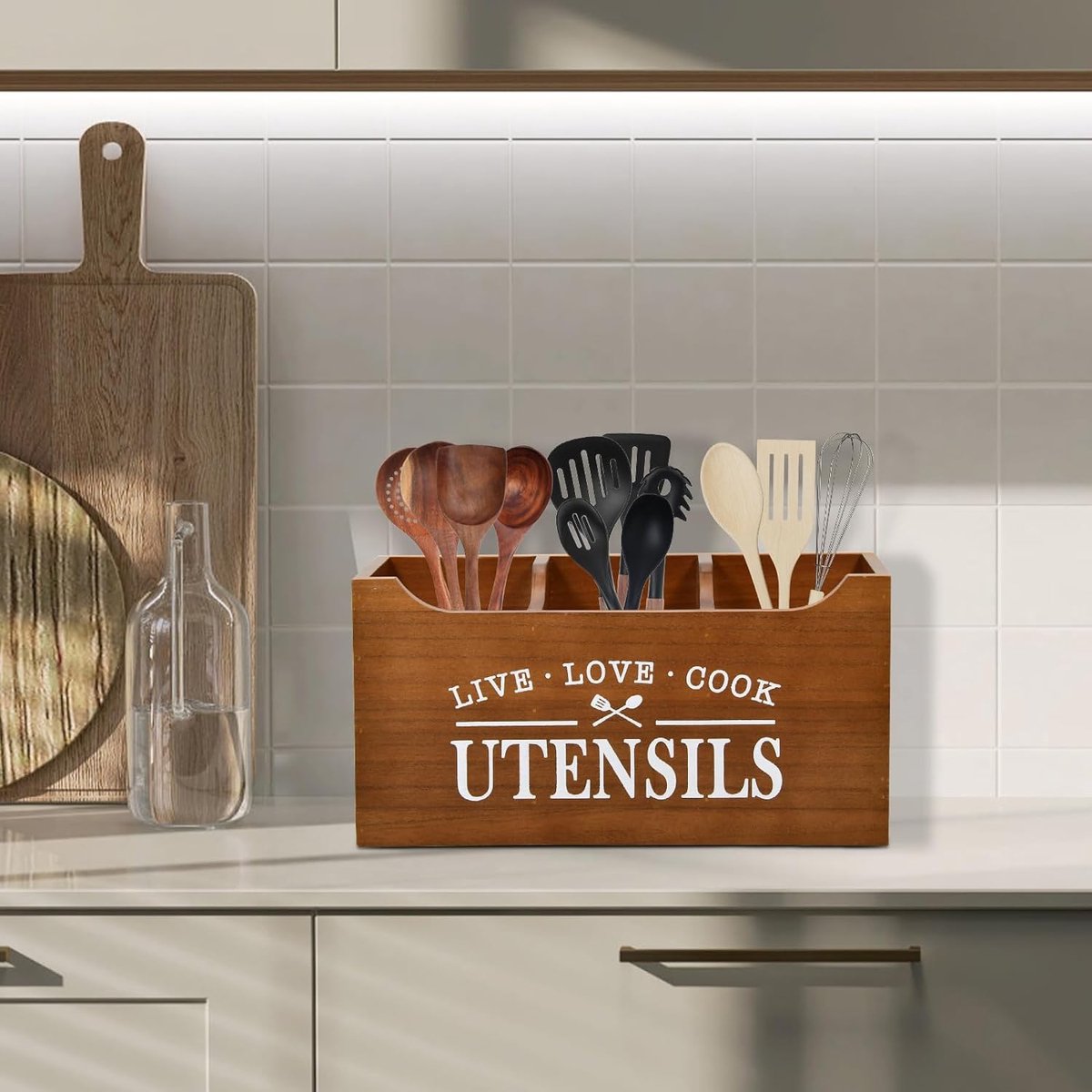 Ce porte-ustensiles en bois est adapté à de nombreux couverts et ustensiles de cuisine sur votre comptoir de cuisine Dimensions : le porte-ustensiles de cuisine taille de la boîte de rangement est de 30 x 12 cm, avec 2 planches non amovibles au milieu, qui divisent le tout en 3 compartiments qui offrent suffisamment d'espace de rangement pour différents ustensiles de cuisine et autres ustensiles de cuisine, classent la vaisselle pour le stockage et rendent la vaisselle plus facilement accessible Porte-couverts Noir 30x12cm Grand Porte-ustensiles De Cuisine Rustique En Bois Avec 4 Copartients Porte-ustensiles Avec Drainage Il peut organiser efficacement les ustensiles et optimiser l'espace dans la cuisine. Conception de trous de drainage : le fond des porte-ustensiles de cuisine dispose de 15 trous de drainage qui permettent à l'excès d'eau de s'écouler facilement, ce qui permet aux ustensiles de cuisine stockés de rester au sec Large utilisation : ce porte-ustensiles de cuisine peut non seulement contenir une variété de couteaux, fourchettes, baguettes, cuillères et autres couverts, mais peut également être utilisé pour stocker des épices, des bouteilles d'huile et d'autres ustensiles de cuisine pour garder le plan de travail propre et bien rangé Organiseur De Tiroir À Épices,4 Niveaux Pour Cuisine,Comptoir (Noir... Organiseur d'évier Gris avec des Compartiments Ajustables,des Trous de Matériaux de haute qualité : ce porte-ustensiles de cuisine est fabriqué en bois de haute qualité, durable, pas facile à casser, réutilisable Moins susceptible de stagner : la hauteur de ces porte-ustensiles de cuisine n'est pas la même que l'avant et l'arrière, il n'est pas facile d'accumuler l'eau après le nettoyage, assurez-vous de rincer à l'eau et de l'essuyer avec un chiffon humide Caractéristiques principales : 3 compartiments : ce porte-ustensiles de cuisine a trois compartiments qui peuvent stocker efficacement les couteaux, fourchettes et cuillères, ce qui garantit un rangement ordonné et un accès facile.