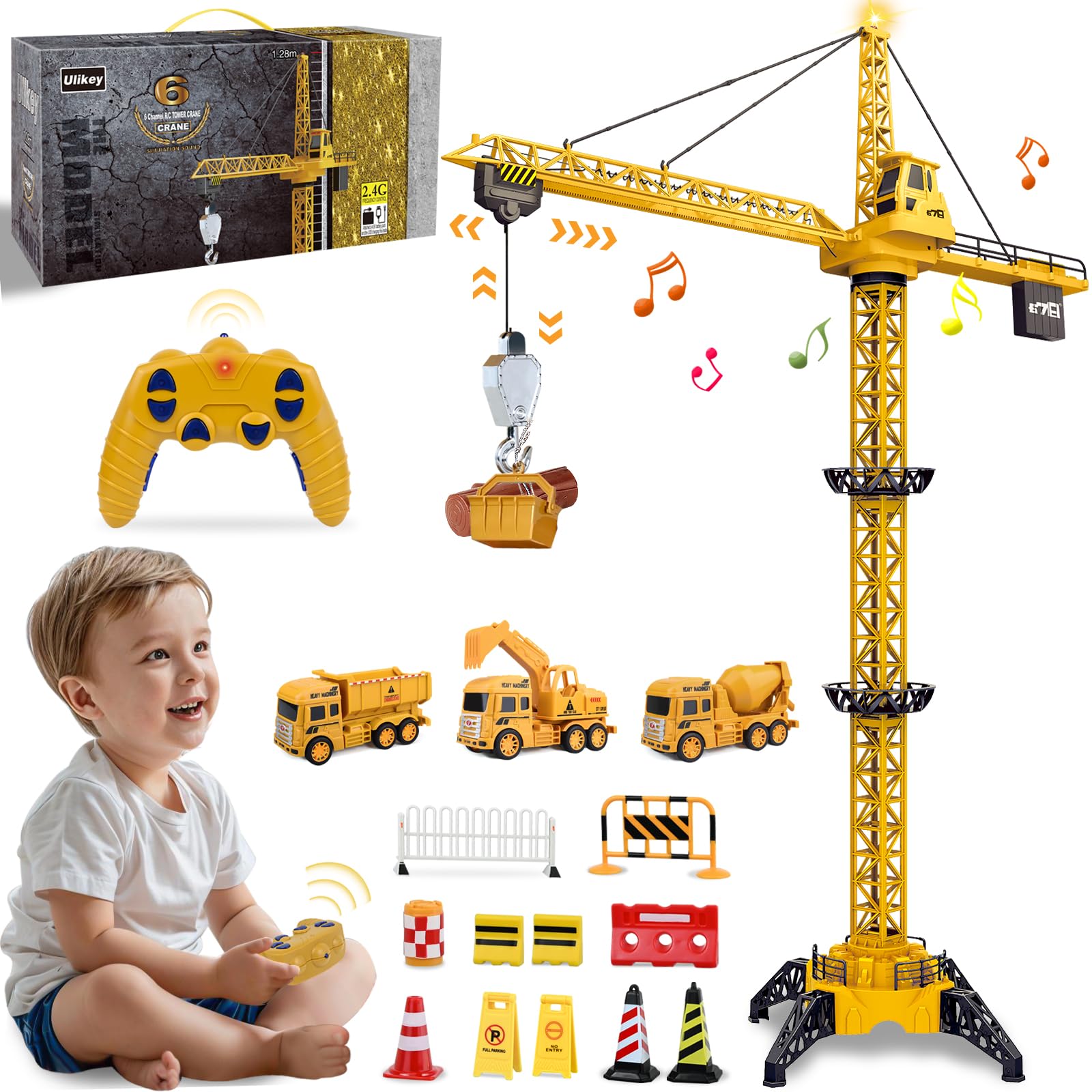 Drfeify Camion Grue Télécommandé Jouet Modèle Ingénieur RC Éducatif Grue élévatrice Télécommande 6 Canaux Ulikey Grue à Tour Télécommandée 24GHz 128 Cm 680 Rotation 6 Grue élévatrice Charge 500g C'est le meilleur choix comme cadeau de Noël, de la journée des enfants, de Pâques, du Nouvel An ou d'anniversaire. 🟡🟡【Set de Grue à Tour Télécommandée】Vous recevrez 1 x grue à tour (assemblage nécessaire) + 1 x télécommande + 1 x mélangeuse jaune + 1 x chariot pelleteur jaune + 1 x chariot basculant jaune + 1 x indicateur de barricade + 1 x bois en plastique + 1 x panier jaune + 2 x piles rechargeables + 1 x câble de recharge. Télécommande à 6 canaux, simule le style réel, avec des boutons avant, arrière, haut et bas, antihoraire et horaire, peut saisir avec précision et laisser les éléments, le crochet de charge peut porter jusqu'à 500 grammes d'objets de poids. Les petits constructeurs vont adorer cette grue à tour RC ! Elle mesure jusqu'à 128cm (hauteur réglable) et se contrôle via une télécommande 2.4GHz (6 canaux) pour lever/baisser le crochet, avancer/reculer le chariot, et tourner la tour à 680 🟡🟡【3 Hauteur Réglable】Cette grue à tour est composée de supports amovibles qui peuvent être montés à 3 hauteurs différentes, choisissez la bonne hauteur en fonction de vos besoins qui sont de 73cm, 100cm et 128cm. Jouet Grue à tour Liebherr Télécommandé 🟡🟡【Multiples Utilisations】Ce jouet de grue télécommandé est joliment emballé avec des accessoires complets, il est livré avec 2 batteries rechargeables, 4 heures de charge et 30 minutes de jeu. La grue a un phare au sommet avec des effets sonores réalistes lors du fonctionnement, vous pouvez déplacer le crochet vers le haut et vers le bas, déplacer le chariot vers l'avant et vers l'arrière, la tour peut tourner jusqu'à 680 degrés, la tour peut tourner en continu dans le sens des aiguilles d'une montre et dans le sens inverse., 🟡🟡【2., 4GHz Télécommande Sans Fil】2., 4GHz Télécommande à fréquence, très lisse, peut fournir une plus grande distance et un fonctionnement précis sans interférence.