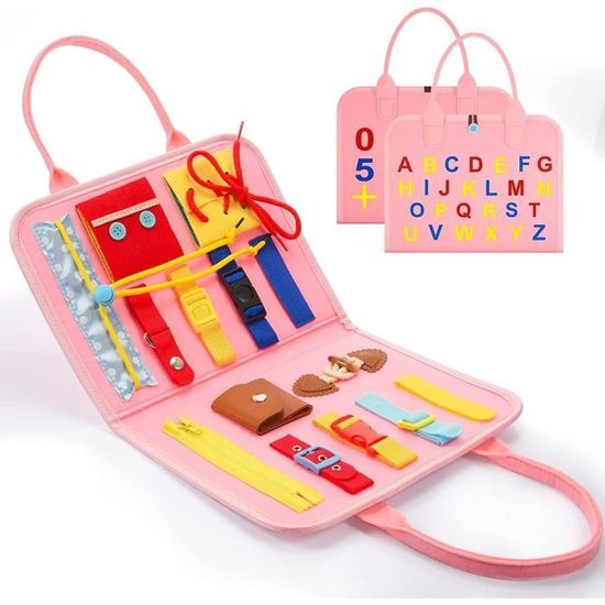 Le tableau des compétences de vie et des compétences cognitives est relié par une fermeture à glissière, qui est amovible pour permettre aux tout-petits de se concentrer et d’encourager le jeu solo et collaboratif. Le Busy Board Montessori 8-en-1 transforme les moments d'attente en précieuses opportunités d'apprentissage. Ce tableau d'activités compact réunit tout ce dont votre petit explorateur a besoin pour développer sa motricité fine et sa concentration, sans écran ni piles Une variété de façons de jouer, apportez un bonheur sans fin à vos garçons filles. Transportez-le, apportez-vous le bonheur à tout moment et n'importe où. C'est un cadeau parfait pour les petits enfants de 1 à 5 ans pour les anniversaires, la Journée des enfants, l'ouverture de la maternelle, Noël, Halloween et le nouvel an! Tableau Sensoriel Activités Enfants Busy Board Français - Jouet Éducatif & Sensoriel Pour Enfant - Planche Jeu Educatif 2 Ans Acquérir des Compétences Pratiques: Busy board montessori conçue pour aider votre enfant à apprendre de manière ludique, permettant aux enfants d'acquérir des compétences de vie tout en jouant, , pour apprendre aux enfants à s’habiller, à boucler, à claquer, à boutonner et à attacher. Cadeau Parfait pour Les Enfants: Pour les enfants, tout est frais et intéressant pour eux, ils veulent donc apprendre et explorer. Idéal comme cadeau éducatif pour garçons filles. Jouet montessori favoriser l'adaptabilité des enfants dans la vie quotidienne, exercer l'indépendance des enfants. Jouet éducatif - ZGEER - Busy Board - 5 Couches - Multicolore - 19 Conception Portable: C'est léger et adopte un design de sac à main, si léger et pratique à transporter. Jouet éducatif - FINDPITAYA - Nouvelle Busy Board - Apprendre la...