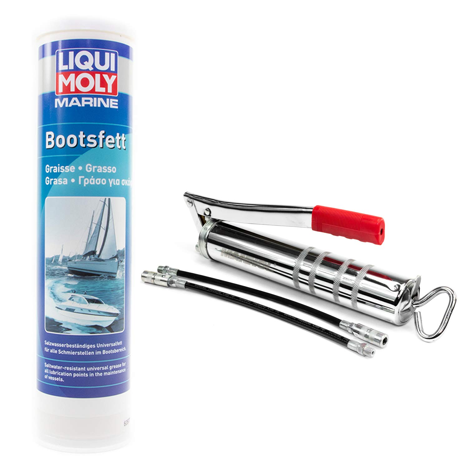 Graisse Résistante Eau Salée Graisse Marine Liqui Moly - Lot 2 Cartouches 400g + Pistolet - Protection Bateaux, Eau Salée - Norme OTAN Pistolet Graisse Bateau Graisse Pour Points Lubrification Bateau 25043 LIQUI MOLY Bootsfett Lubrifiants Cartouche, Poids: 400g Lubrifiant Bateau Haute Performance Contenu de la livraison : 2 pièces de 400 g comme sur la photo du produit. Graisse haute performance pour une variété de points de lubrification dans le domaine des bateaux. Conforme à la spécification marine de l'OTAN G460., Résistant dans un environnement humide et assure une bonne étanchéité. Liqui Moly Graisse marine pour bateau 400 g W689111 Marquage selon la norme DIN 51502., KPF2G-20., Caractéristiques techniques et description : Modèles compatibles : aucune information ou universelle. Utilisation polyvalente sur les points de lubrification dans l'ensemble du secteur des bateaux et des bateaux. Convient également pour les composants extérieurs exposés à l'air salé et à l'eau salée Référence fabricant : 25043., Quantité : 800 g., Fabricant : LIQUI MOLY., . Lubrification extrêmement longue.
