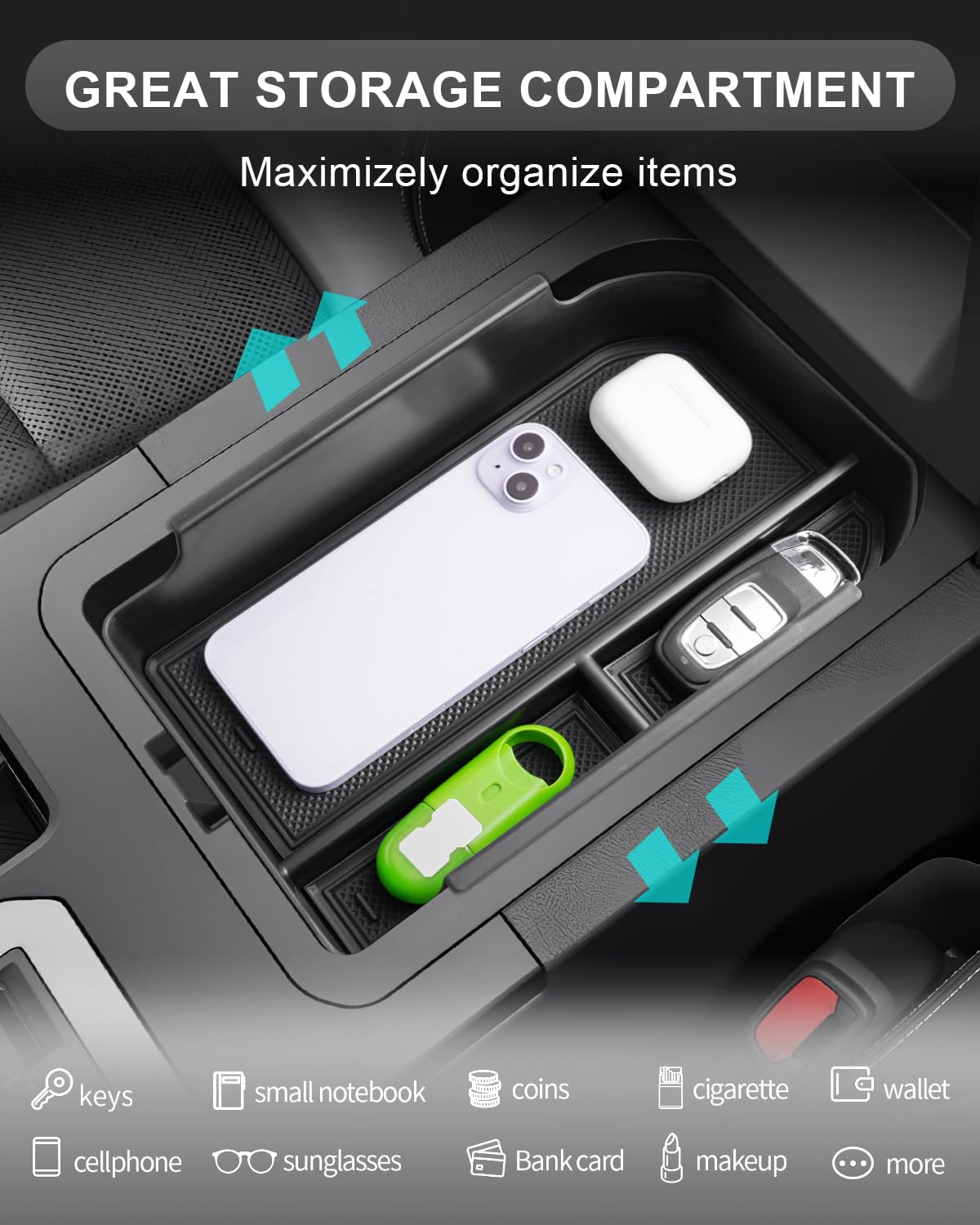 Le sac de rangement à suspendre côté copilote est installé sur le côté passager du levier de vitesse, ajoutant un espace de rangement pour la console centrale. 3) Veuillez appuyer fort, en particulier sur les bords, au moins 2 minutes après l'installation. 2025 Yeni Toyota Land Cruiser Prado (J250) Türkiye Fiyatı | Oto Kokpit PSLER Organiseur de console centrale pour Land Cruiser Prado LC250 J250 2024 2025 Accessoires d'intérieur ABS Accoudoir Plateau garder votre console de changement de vitesse propre et bien rangée. Ne convient pas pour la conduite à droite. Il suffit de le coller, pas besoin de démonter quoi que ce soit., Contenu : 1 pièce. Conseils : il ne convient que pour la conduite à gauche. Range Côté Passager Pour LC250 2024 Center Console A/C Vent Trim Cover For Toyota Land Cruiser Prado J250 LC250 2024 2025 Accessoire Console Centrale Prado J250 LC250 Fabriqué en plastique ABS de qualité supérieure, stable et ferme, ne se décolore pas, résistant à l'usure et aux rayures. Compatible avec Toyota Land Cruiser Prado 250 J250 LC250 2024 2025 Méthode d'installation : Nettoyez la surface de la voiture, gardez-la sèche et propre. 2) Il y a de la colle auto-adhésive au dos de l'article.