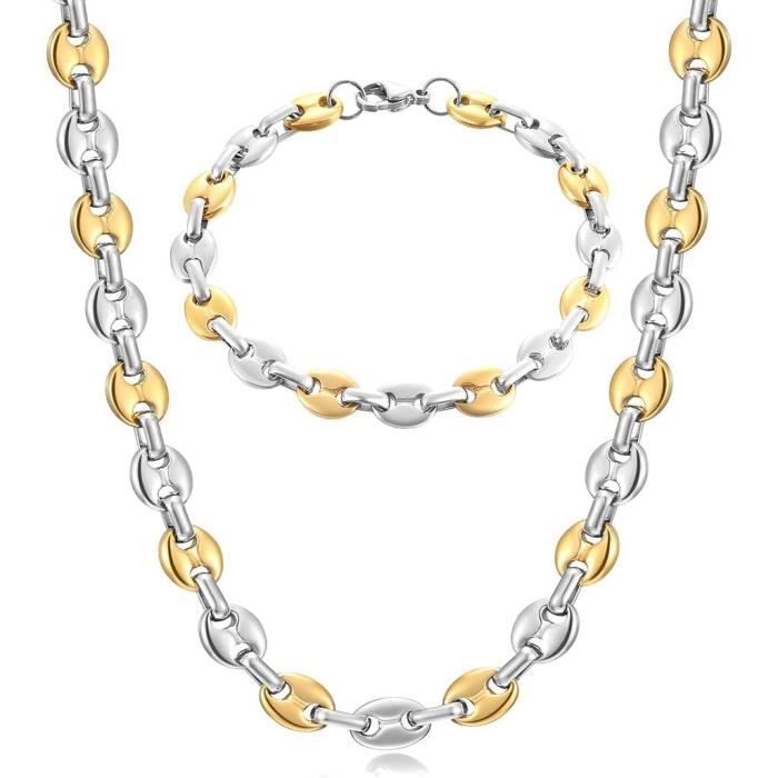 HNSP collier à chaîne torsadée en acier inoxydable pour hommes chaînes Set Bijoux Homme Style Gothique Hip Hop JJDreams Bracelet En Acier Inoxydable Avec Pierres Naturelles - Pour Collier Chaîne Sabot Réglable C'est donc un cadeau idéal pour un amateur de punk rock et idéal pour la Saint-Valentin. JJDreams Homme Collier et Bracelet Acier inoxydable Chaînes de sabots Collier Bracelet Set Goth Hip Hop Rock Bijoux Cadeau pour Homme Parfait pour le gothique, les concerts de rap ou les vêtements de tous les jours. Collier et bracelet, verroterie verte - La Boîte à Bijoux Longueur réglable : collier de 40,5 cm + 5 cm de chaîne d'extension, bracelet de 17 cm + 4 cm d'option réglable. Coffret montre métal et bracelet acier homme CM021 Largeur de 5,5 à 8,5 mm pour les silhouettes masculines. Hypoallergénique pour garantir la compatibilité avec la peau, idéal pour les peaux sensibles.