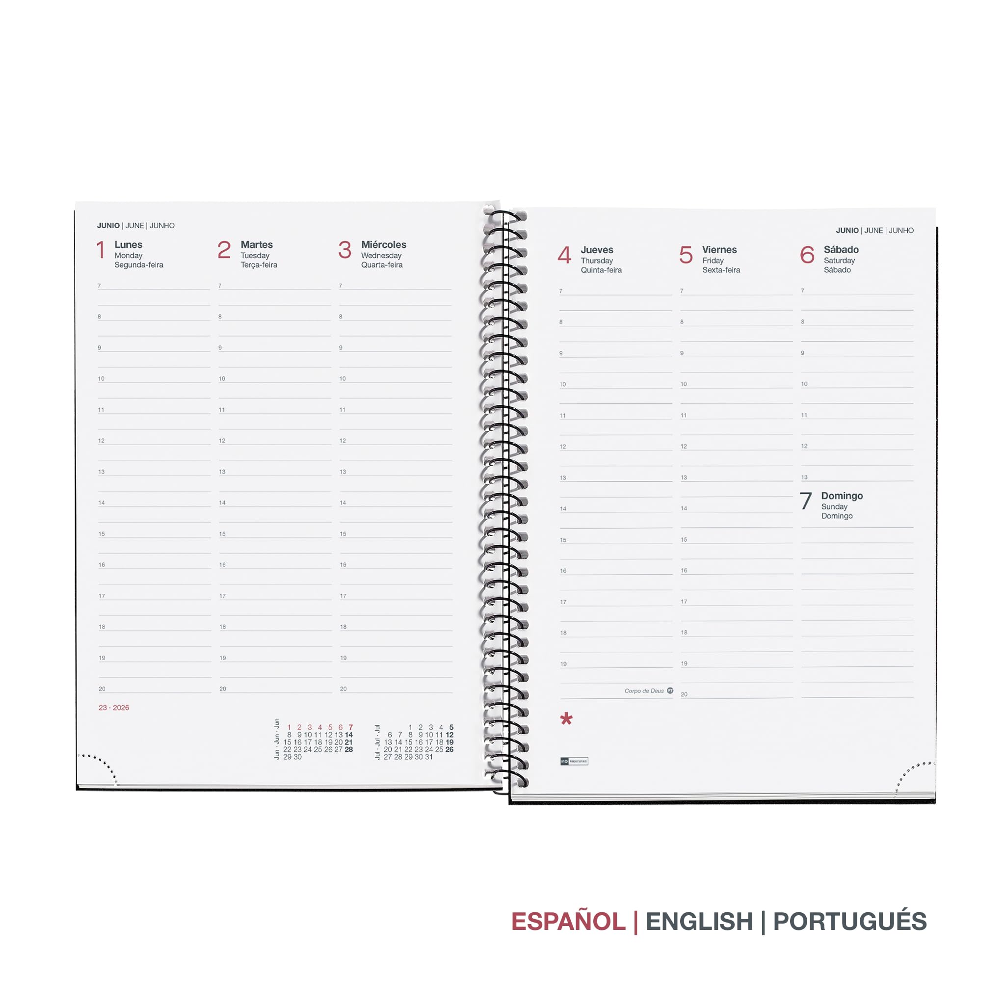 Son format compact de 90 x 140 mm permet de le ranger facilement dans un sac ou un sac à dos, sans renoncer à l'espace pour vos plans hebdomadaires. Couverture rigide plastifiée mate, reliure cousue et papier ivoire certifié FSC 80 g/m², offrant résistance et qualité dans les moindres détails Parfait pour ceux qui préfèrent regarder toute la semaine en un coup d'œil, dans un format léger et fonctionnel. Papier 80g/m2 Poche Intérieure Miquelrius Agenda Semainier 2026 Format Petit Format (90 X 140 Mm), Couverture Rigide En Carton, Spirale, Fermeture élastique, Papier 80 G/m², Cat-en-pt, Dégradé Agenda Miquelrius Passport Conçu pour vous accompagner partout, l'agenda Passport 2026 de Miquelrius est idéal pour ceux qui apprécient la portabilité et l'organisation. Design robuste : couverture rigide plastifiée mate et reliure cousue, résistante et de style compact. Détails fonctionnels : poche intérieure, fermeture élastique, porte-stylos et ruban marque-page, tout conçu pour organiser votre semaine. Agenda scolaire Moleskine 2022 2023 Semainier Le Petit Prince grand... Miquelrius Agenda 2026 un jour par page, petit format (90 x Vue hebdomadaire horizontale, multilingue en catalan, anglais et portugais, avec jours fériés en Espagne, Catalogne et ses capitales provinciales et icônes utiles. Format Passport Agenda 2026 Passport 90 x 140 mm, pratique et très portable, parfait pour transporter dans un sac ou un sac à dos. Comprend une poche intérieure, un porte-stylo, une fermeture élastique et un ruban marque-page, tous conçus pour que vous ayez toujours l'essentiel à portée de main.