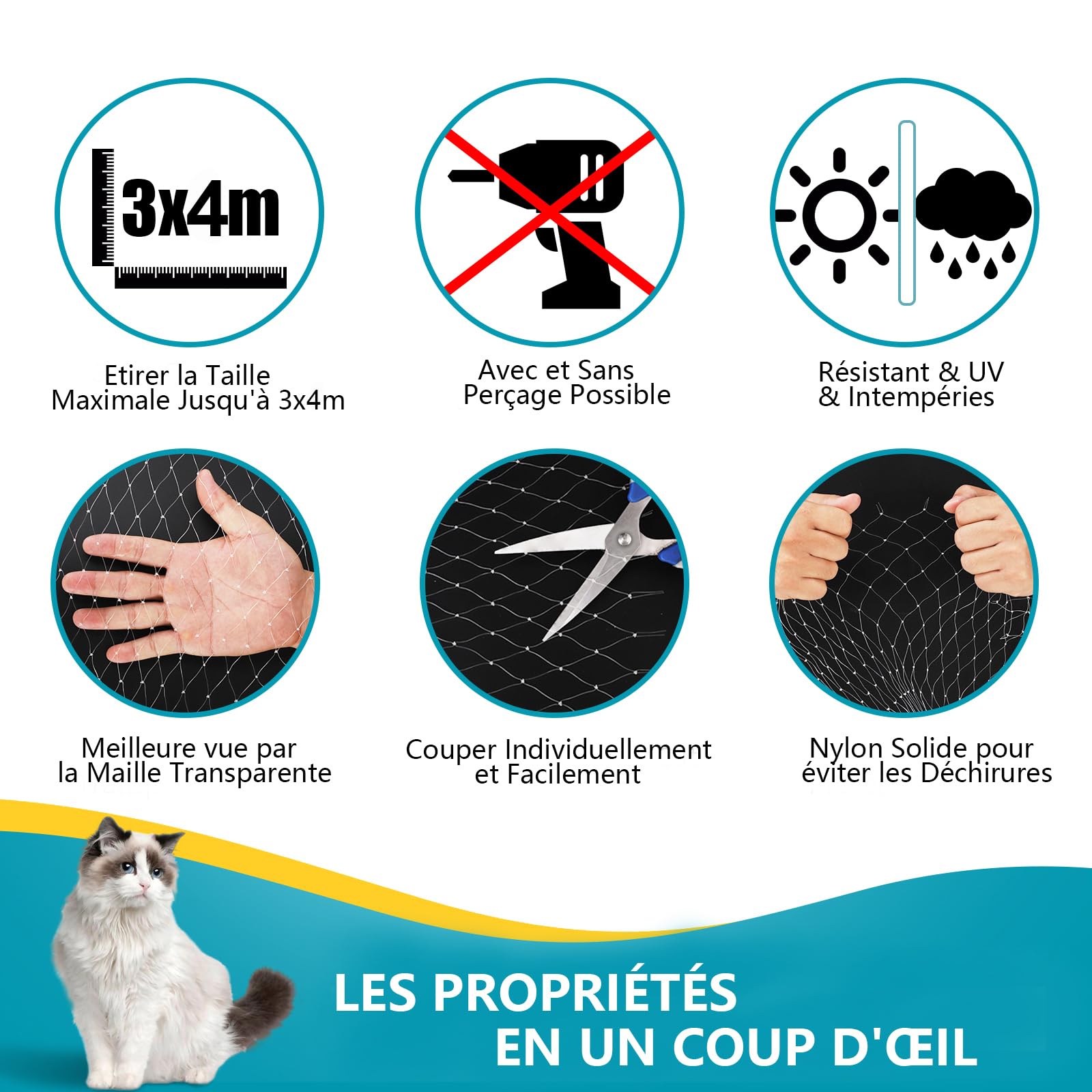 Filet Balcon Chat 40 Crochets Adhésifs Pour Filet De Balcon Pour Chat – Avec Colle De Montage 30 ML, Extra Forts, Transparents Et Petits, Sans Perçage, Résistants Aux Intempéries, Installation Facile Fixation Balcon Sans Perçage La solution parfaite pour les balcons dans les appartements en location. L'installation de notre filet de sécurité pour balcon est un jeu d'enfant grâce aux crochets adhésifs ultra-résistants et résistants aux intempéries. Que vous souhaitiez les utiliser en extérieur ou à l'intérieur, nos crochets, disponibles en transparent et en noir, conviennent parfaitement à chaque utilisation Résistance exceptionnelle: Filet de chat avec crochets adhésifs de haute qualité, qui restent sûrs même par temps de pluie et de vent. Facile à installer: Filet de chat pour balcon sans perçage, fixé facilement avec des crochets adhésifs, parfait pour le plâtre, la pierre et plus encore Important : le montage se fait de manière responsable. Discret et universel : les crochets transparents s'intègrent discrètement dans n'importe quel environnement – pour un maintien sûr sans perturber l'apparence. Filet De Protection Pour Chat Filet Pour Chats Autres Accessoires Pour Chats Balcon Filet De Protection Transparent Pour Chats Filet Pour Balcon 3x8m 86861015 Convient pour un logement : montage facile sans perçage – peut être retiré sans laisser de résidus. Description du produit Montage sans perçage - Sécurité des chats avec système Notre kit de fixation avec crochets transparents KONZEPT et adhésif puissant de Jacopic est la solution idéale pour fixer facilement et proprement un filet pour chat sans perçage ni outils. Grâce à la forte colle, ils adhèrent de manière fiable au béton, au métal ou au plastique, à l'intérieur comme à l'extérieur. Notre kit complet vous offre tout ce dont vous avez besoin pour une solution durable et sans résidus sans traces permanentes. Durable et résistant aux intempéries : les matériaux de qualité supérieure assurent un maintien sûr par tous les temps, que ce soit le soleil, la pluie ou le gel. Kit complet - Sans perçage : comprend des crochets transparents KONZEPT et de la colle de montage puissante de Jacopic. Mode d'emploi Adultes Idéal pour les balcons, les fenêtres ou les terrasses, en particulier dans les appartements en location où les trous de perçage ne sont pas autorisés.