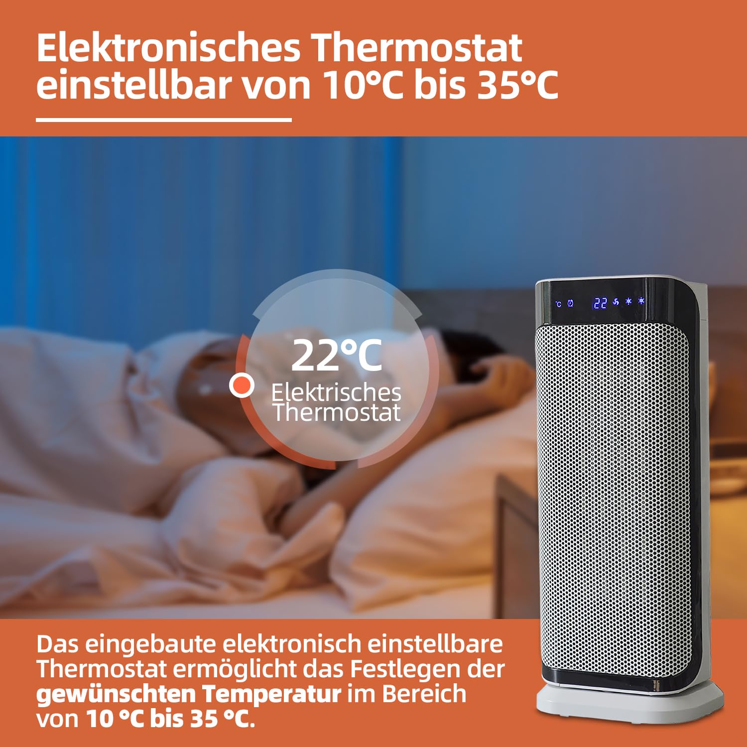 SHX Radiateur soufflant céramique PTC avec écran 2000 W SHX37PTC2000LD - Radiateur soufflant en céramique, 2000 W, fonction pivotante, écran, télécommande, blanc/noir Marque Convient pour les pièces jusqu'à 25 m², il dispose de trois niveaux de puissance (fonction ventilateur/1000 W/2000 W). Radiateur Ptc 2000w Thermostat SHX Radiateur Soufflant Céramique PTC Avec écran 2000 W SHX37PTC2000LD Radiateur écran LCD Thermostat La température souhaitée peut être réglée via le thermostat et lue sur l'écran. En outre, un affichage LCD clair informe la température ambiante actuelle et les fonctions réglées. CONTENU DE LA LIVRAISON : radiateur soufflant, télécommande avec pile (CR2025), manuel d'utilisation | L 170 x P 126 x H 415 mm | 2,5 kg | Garantie 2 ans | Marque autrichienne Radiateur électrique soufflant mural avec buse céramique et... Radiateur électrique soufflant - HOMCOM - oscillant 1100/2200 W - céramique PTC - télécommande incluse - minuterie 8h - 21x21x73 cm - Bricolage Le radiateur soufflant céramique PTC de SHX impressionne par son design simple et sa fonction pivotante pratique qui répartit l'air uniformément dans la pièce. Le thermostat réglable électroniquement permet de régler la température souhaitée dans une plage de 10 °C à 35 °C. Avec la fonction minuterie, vous pouvez régler le radiateur soufflant individuellement entre 1 et 8 heures.