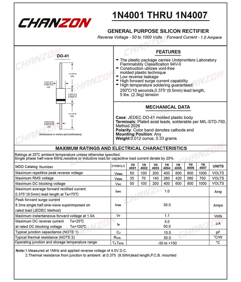 V-MRR: 400V; V RMS: 280V Haute capacite de bondir vers l'. Les meilleures offres pour (R) 25 x 1N4004 400V 1A Axial Supply Line Silicone Rectifier Diodes K7G2- sont sur Comparez les prix et les spécificités des produits neufs et d 'occasion Pleins d 'articles en livraison gratuite La diode 1N4004 appartient à la famille des diodes de redressement au silicium. Elle est conçue pour gérer des tensions jusqu'à 400 volts et des courants jusqu'à 1 ampère. Cela en fait un choix courant pour de nombreuses applications de redressement dans les circuits électroniques Dimension totale: 2,5 x 58mm / 0,098 x 2., 28 (D * L) 1N4004-T Diodes Incorporated | France Nom du produit: Redresseur Diode Modele: 1N4004; SI: 1A Poids net: 6g; Contenu du coffret: 25 x Redresseur Diode Composants électroniques 1N4004 1A 25 X 1N4004 400V 1A Axial Lead Silicone Diodes De Diodes Redressement Général Usage ne cautionne pas l'utilisation de produits. Classification d'inflammabilite 94V-0., Construction utilise la technique de plastique moule sans vides., Faible fuite inverse. Haute bond en de la capacite actuelle., Faible fuite inverse.