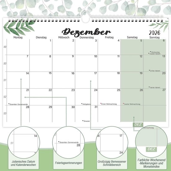 Finition facile à nettoyer: La conception résistante aux traces optimise l'organisation quotidienne et offre un espace d'écriture généreux pour noter les plans sans risque de traces désordonnées, conservant une apparence soignée. Fonctionnalités modulables: Idéal pour une utilisation polyvalente, ce calendrier magnétique s'intègre à les espaces de vie via son installation sur surfaces lisses, fournissant une solution fiable pour l'organisation familiale ou professionnelle Compte à rebours: Intègre un système de compte à rebours pour le précis des échéances et événements importants, permettant un visuel des objectifs sans effort et une organisation sans stress Planificateur Familial Frigo Calendrier Magnétique Pour Tableau Blanc Et Réfrigérateur, Calendrier Magnétique Comprenant Mois, Jours De La Semaine, Chiffres De 1 à 31, Blanc Avec Lettres Noires Calendrier 2026 Avec Compteur Présentation du calendrier magnétique 2026 : calendrier magnétique de 20,3 x 25,4 cm de janvier à décembre 2026. 12 pages mensuelles avec calendrier mensuel, date julienne et jours fériés, pour une planification efficace Le calendrier magnétique pour réfrigérateur de 18 mois sert de planificateur pour organiser les tâches et événements à la maison, dans le salon, la salle d'étude, l'école ou la classe. Avec son extérieur durable, vous pouvez écrire et effacer les plans sans effort, rendant l'organisation facile une réalité quotidienne. Que ce soit pour les emplois du temps familiaux ou la... Calendrier magnétique réfrigérateur – 12.99 inches calendrier