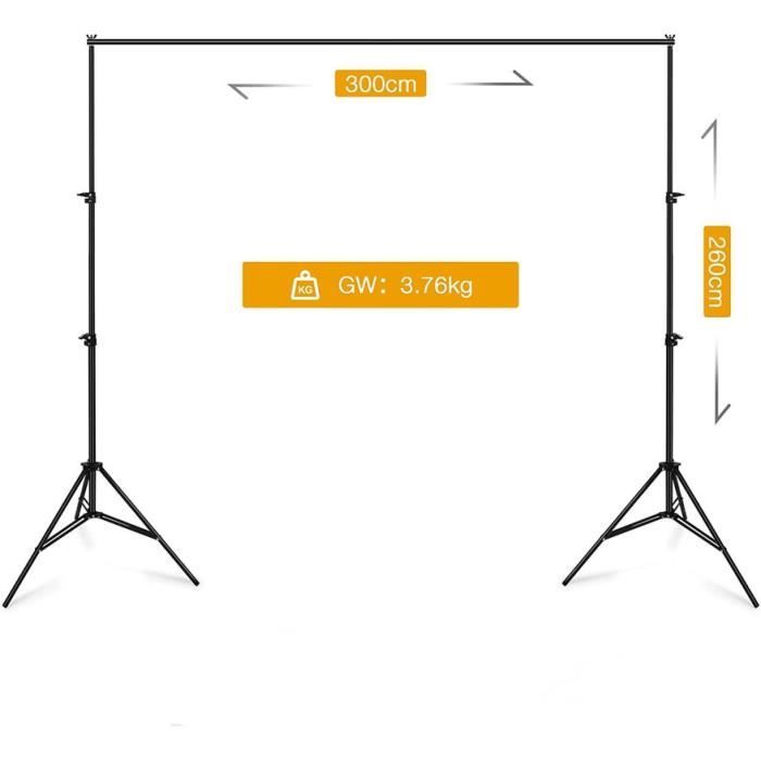 Support Photo Supports De Toile De Fond Pour Photographie 2 X 3 M Kit De Studio Photo R Glable Support De 874035 TLGREEN Support De Fond, Système De Fond Réglable De 2,1 X 3 M, 8 Clips De Fond 2 Sacs De Sable 1 Sac A Main Studio Photo Et Usage Domestique Adapte A La Photographie De Produits Aux Portraits A 82418331 Large application : idéal pour la photographie professionnelle, les studios photo, peut être utilisé dans de nombreux types de scènes intérieures et extérieures telles que les mariages, Noël, fêtes, TikTok, YouTube, enregistrements vidéo et vidéoconférences Fatazoii Support de toile de fond réglable 2 m x 3 m pour décoration de studio photo, vidéo, mariage, fête d'anniversaire Design télescopique rotatif : la barre transversale dispose d'un mécanisme télescopique rotatif innovant qui offre une plus grande sécurité et stabilité aux points de connexion tout en permettant un réglage de la largeur sans effort. Ce support de fond avec quatre barres transversales permet un réglage facile de la hauteur (de 84cm à 210cm) et de la largeur (de 152cm à 300cm), ce qui permet de prendre des fonds de différentes tailles Vous pouvez facilement ajuster le système d'arrière-plan aux dimensions souhaitées Support de toile de fond réglable : facile à monter et à démonter par une personne en quelques minutes, hauteur (de 84 cm à 210 cm) et largeur (de 159 cm à 300 cm) réglables Il est très peu encombrant à ranger et peut être transporté très facilement Support de toile de fond réglable : facile à monter et à démonter par une personne en quelques minutes, hauteur (de 84 cm à 210 cm) et largeur (de 159 cm à 300 cm) réglables