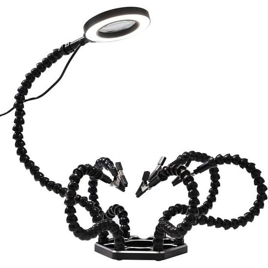Idéal pour une large gamme d'utilisations dans la soudure, la réparation électronique, l'artisanat, la modélisation, l'assemblage, l'entretien, les bijoux et plus encore. Coup De Main Pour Le Soudage Main D'Aide À Souder, Loupe Usb 3X À 5... Contenu de l'emballage : 1 base en acier robuste, 1 loupe de poche, 5 bras métalliques flexibles, 4 pinces crocodiles avec manchons en caoutchouc, 5 vis cruciformes, 5 pieds antidérapants en caoutchouc. Station de soudage avec loupe 6x, outil de station de soudure 4 bras flexibles avec base stable pour réparation électronique, bijoux à souder Les pinces crocodiles peuvent être tournées à 360 degrés, puis positionnées et verrouillées. 3eme Main Soudure Station De Soudage Avec Loupe QIILU - Mains D'aide à Souder Bras Flexibles Mains Réglables En Soudure Par Point Cet assistant de soudage vous donne une totale liberté de travailler sur vos projets. LSF -loupe avec lumière Verre Grossissant avec Lumière 2,5x 25X 50X HD Champ de vision grossissant : notre table de soudage est équipée d'une loupe 8x, la loupe portable amovible peut répondre à différents besoins d'utilisation, peut vous aider à agrandir les petits détails du travail de soudure, pour garantir que le travail est aussi précis que possible, mais vous pouvez également l'utiliser pour lire des livres, lire des petits caractères, etc. Pieds antidérapants et base en acier massif robuste : 5 patins en caoutchouc antidérapants sur le fond empêchent votre assistant de soudage de glisser sur la table et protègent votre surface de travail des rayures et des éraflures, et la base en acier robuste de 20 x 14 cm garantit que votre table ne se renverse pas