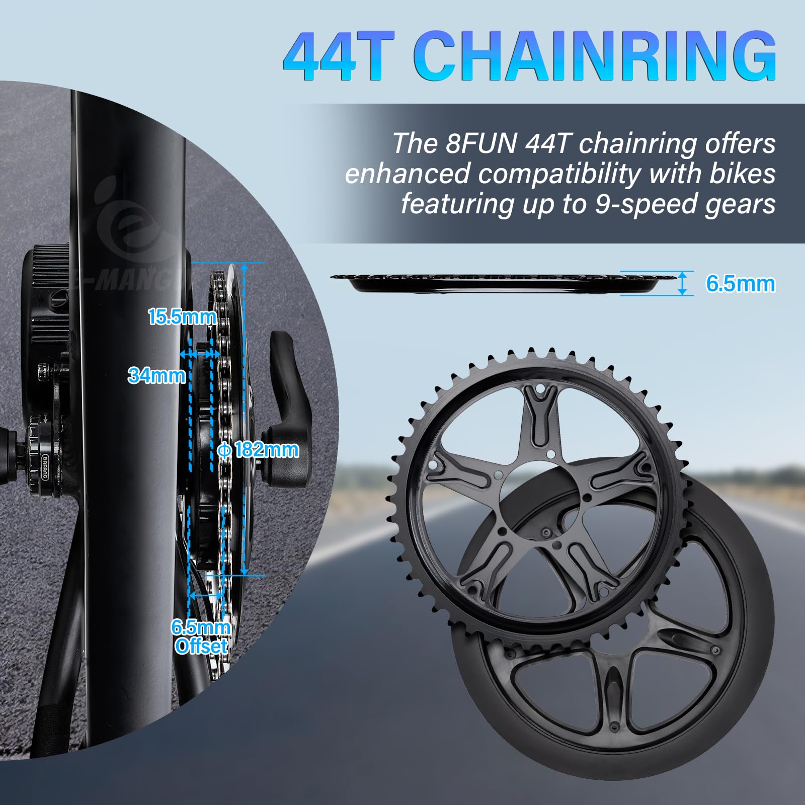 Contenu de l'emballage : Plateau * Remarque : . Caractéristiques: *Compatibilité: Le pignon de chaîne de 42T est adapté pour BAFANG aux kits de moteur central, spécifiquement les modèles BBS02 et BBS01, disponibles en puissances de 250W, 350W, 500W et 750W Caractéristiques : * Compatibilité : le plateau 42T est adapté pour les kits Bafang Mid-Drive, spécifiquement pour Bbs02 et pour les modèles Bbs01, disponible en puissance nominale de 250 W, 350 W, 500 W et 750 W. Avec environ 209 grammes, il contribue à l'efficacité globale du vélo sans sacrifier l'intégrité structurelle dans des conditions exigeantes. Le profil de dents étroites et larges aide à prévenir la chute de la chaîne, offrant un transfert de puissance plus fluide et une meilleure stabilité de conduite sur différents terrains. Plateau 42T pour Bafang Bbs02 Bbs01 : compatible avec les kits de moteur central 250 W, 350 W, 500 W et 750 W, ce pignon décalé à 42 dents est conçu avec précision pour une intégration transparente avec les systèmes Bafang. Efficacité de cyclisme améliorée : doté d'un design décalé de 18,5 mm optimisé pour les transmissions à 10 vitesses, ce plateau améliore l'alignement de la chaîne et réduit le stress latéral. Compatibilité : pour moteur à entraînement central BAFANG BBS01B BBS02B BBS01 BBS02 Les lots de produits sont différents, l'apparence peut être différente, mais cela n'affectera pas l'utilisation * Performance améliorée : le plateau est conçu avec un décalage de 18,5 mm et convient pour les vélos à 10 vitesses. AMÉLIOREZ VOTRE MOTEUR pour BAFANG BBS02 avec capteur de frein Plateau Aluminium 6061 Décalé Plateau De Moteur Central 42T Avec Pignon Décalé De 18,5 Mm Plateau Aluminium 6061 Décalage 18.5mm La couleur réelle de l'article peut être légèrement différente de celle de la photo en raison de nombreux facteurs tels que la luminosité de votre écran et la luminosité de la lumière., 2., Les mesures étant prises à la main, les tailles indiquées peuvent varier légèrement. Son design étroit et large minimise le déraillement de la chaîne. * Léger : fabriqué en alliage d'aluminium Cnc 6061, il pèse environ 209 g, et son design léger améliore l'efficacité et le confort du cyclisme. * Installation facile : le plateau assure une installation facile en alignant les dents larges avec les plaques de liaison extérieures et les dents étroites avec les maillons intérieurs. Matériau : alliage d'aluminium 6061., * Taille : 179,5 mm (diamètre), convient pour Bbs02 et pour moteur central Bbs01 Couleur : noir.