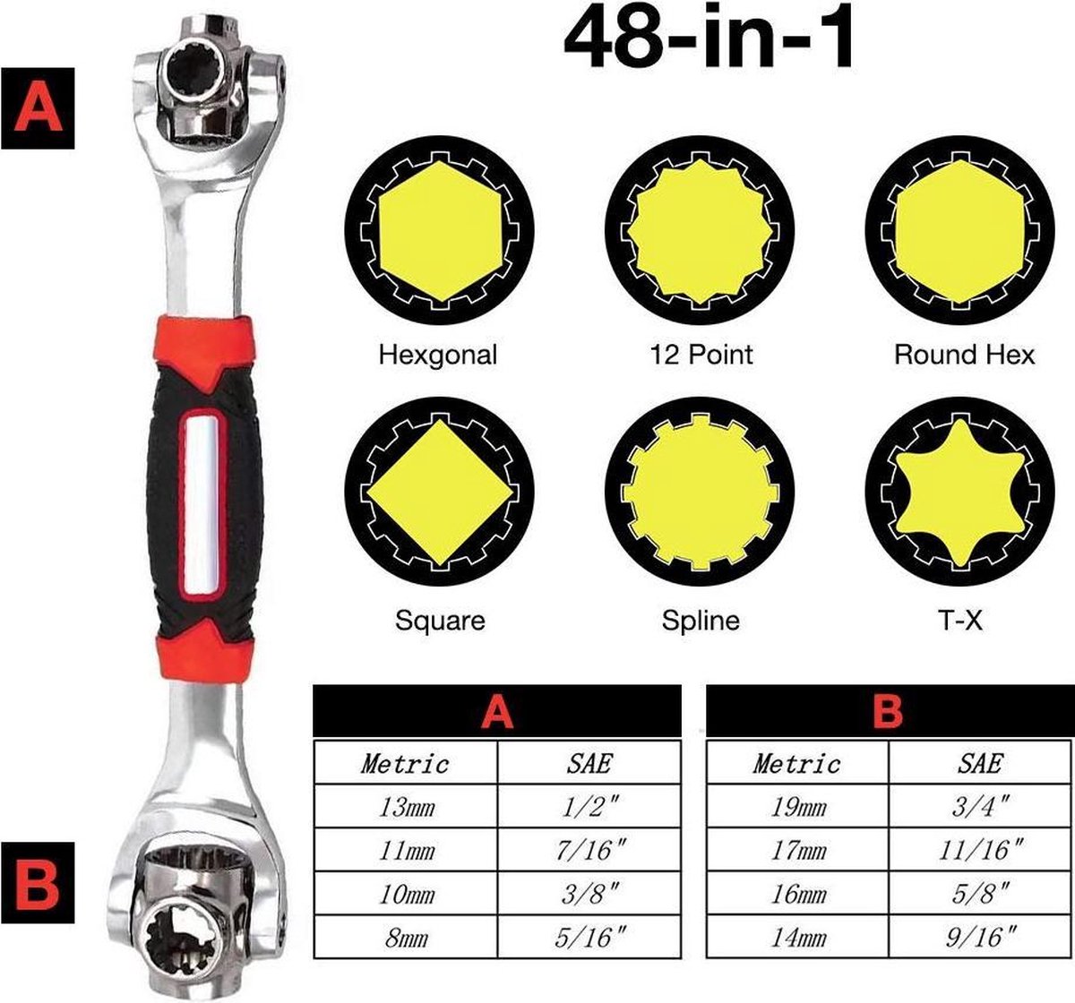 Cloué : Ainsi, le vissage est amusant, une clé – tellement d'utilisations possibles Clé à Cliquet Clé à Douille Multifonction 52 En 1 Avec Tête Rotative à 360 Clé Chrome Vanadium Poignée Bi-matière Véritable qualité professionnelle - Outil WGB La clé multifonction 48 en 1 est utilisable des deux côtés et est en acier au chrome vanadium de qualité supérieure. Clé universelle : la clé pratique convient pour les vis Torx, Spline, Carré, Hexagonal, Douze pans, etc. Idéal pour les réparations sur voiture, moto, vélo, etc. La rotation à 360° de la clé à douille permet un travail polyvalent, même dans les endroits étroits Grâce aux deux têtes pivotantes à 360 °, vous pouvez également atteindre les endroits étroits et vous pouvez dévisser. Poignée surélevée grâce à une poignée à 2 composants Soit vous avez toutes les tailles disponibles, soit vous avez un système d'emboîtement dans lequel vous devez toujours le démonter et le monter. Étant donné que notre clé est vraiment polyvalente, elle permet non seulement d'économiser de l'espace, mais maintient également les dimensions appropriées pour différentes vis et outils. Clé multifonction 48 en 1 Avec la clé multifonction de WGB, vous avez toutes les clés à douille dont vous avez besoin pour votre projet et votre réparation. ilustración de llave ajustable o llave inglesa 11630212 PNG Cette clé à douille 52 en 1 est adaptée à tous vos travaux ; un simple clic ou une rotation suffit pour passer d'une taille à l'autre. Plus besoin de plusieurs clés à douille ni de lourdes boîtes à outils. Fini les boîtes à outils encombrantes !Sa tête rotative à 360° permet un réglage rapide de la taille souhaitée. Vous pouvez ainsi travailler à un angle de 45° ! Cet angle... Dimensions et poids : 250 x 50 x 40 mm - Poids : 442 g