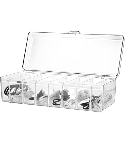 【Contenu de la livraison】: vous recevrez 2 boîtes de rangement de câbles, 7 séparateurs amovibles, 12 serre-câbles (3 en blanc, noir, rose et orange). FRETONBA Lot de 2 boîtes de rangement de câbles transparentes avec 7 compartiments et 14 serre-câbles pour le rangement sur le bureau (bureau) À propos de cet article Description du produit : Vous recevrez 2 boîtes de rangement de câbles, 7 cloisons et 12 serre-câbles pour vos besoins de rangement. L'organisateur de câbles de charge peut également être utilisé pour ranger des cosmétiques, des bijoux, des cartes, des trombones, des clips, des notes adhésives et plus encore. Stockage polyvalent : la boîte de rangement pour câbles est parfaite pour ranger et sécuriser les câbles, les chargeurs de téléphone portable, les câbles d'alimentation, etc. Que vous utilisiez un chargeur de téléphone portable plus petit ou un chargeur de tablette plus grand, vous pouvez classer et ajuster l'espace à l'intérieur de la boîte de rangement de câbles en fonction de vos besoins. L'organiseur de câbles peut être empilé pour le rangement et permet d'économiser de l'espace sur votre bureau. Boîte de rangement de câbles en plastique transparent avec séparateur - * * de stockage de câbles de bureau pour les multiprises, les * et les fournitures de bureau à domicile La boîte de rangement pour câbles est fabriquée en plastique, durable et facile à nettoyer, elle peut organiser tous vos gadgets de bureau et garder votre bureau bien rangé. PAVSTINE Boite Rangement Cable, lot de 2 Range Cable Plastique Boite Range Câble Pliable Lot De 2 Boîtes De Rangement Pour Câbles Transparentes Avec 8 Compartiments, Boîte De Rangement Pour Chargeur Et Multiprises Avec 20 Attaches De Fil Réutilisables Boite Cache Cable Conception de la cloison : les séparateurs horizontaux et verticaux du rangement du câble de charge sont amovibles. Les séparateurs horizontaux et verticaux de l'organisateur de câbles de charge sont amovibles, vous pouvez trier et ajuster l'espace dans la boîte en fonction de vos besoins. Il peut également être utilisé pour ranger des cosmétiques, des bijoux, des cartes, des trombones, des clips, des notes adhésives et ainsi de suite. Caractéristiques du produit : Couleur : transparent. Quantité : 21 Matériau : plastique.