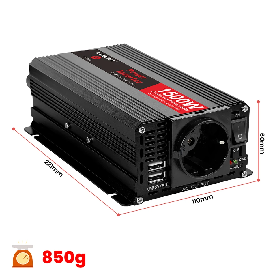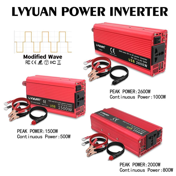 Onduleur 12v AC à DC 1500w FS-I006 Power Inverter MORY00221 - Sodishop Guinée 1pc 150W DC 12V à AC 220V Auto voiture convertisse... – Grandado 1500W/2000W/2600W DC 12V à AC 220 Portable voiture onduleur chargeur convertisseur adaptateur universel Auto accessoiresEfficacité de conversion: 0,9Puissance nominale: 500WFréquence de sortie: 50HzTension de sortie: CA 220 ± 10%Tension d'entrée: 12V CCOrigine: Chine continentale Certification: CE, FCC, RoHS, Efficacité de conversion: 0,9 , Puissance nominale: 500W Conversion efficace : notre onduleur à onde sinusoïdale pure convertit de manière transparente l'alimentation 12 V CC en alimentation 220 V CA, fournissant une source d'électricité fiable et efficace pour une large gamme d'appareils et d'applications Onduleur Voiture 12V 220V 1500W Voiture Onduleur DC 12V à AC 110V Convertisseur 2.1A Double USB Auto Transformateur De Onduleur Portable Pour Camping Voiture Fréquence de sortie: 50Hz