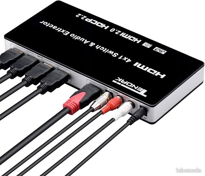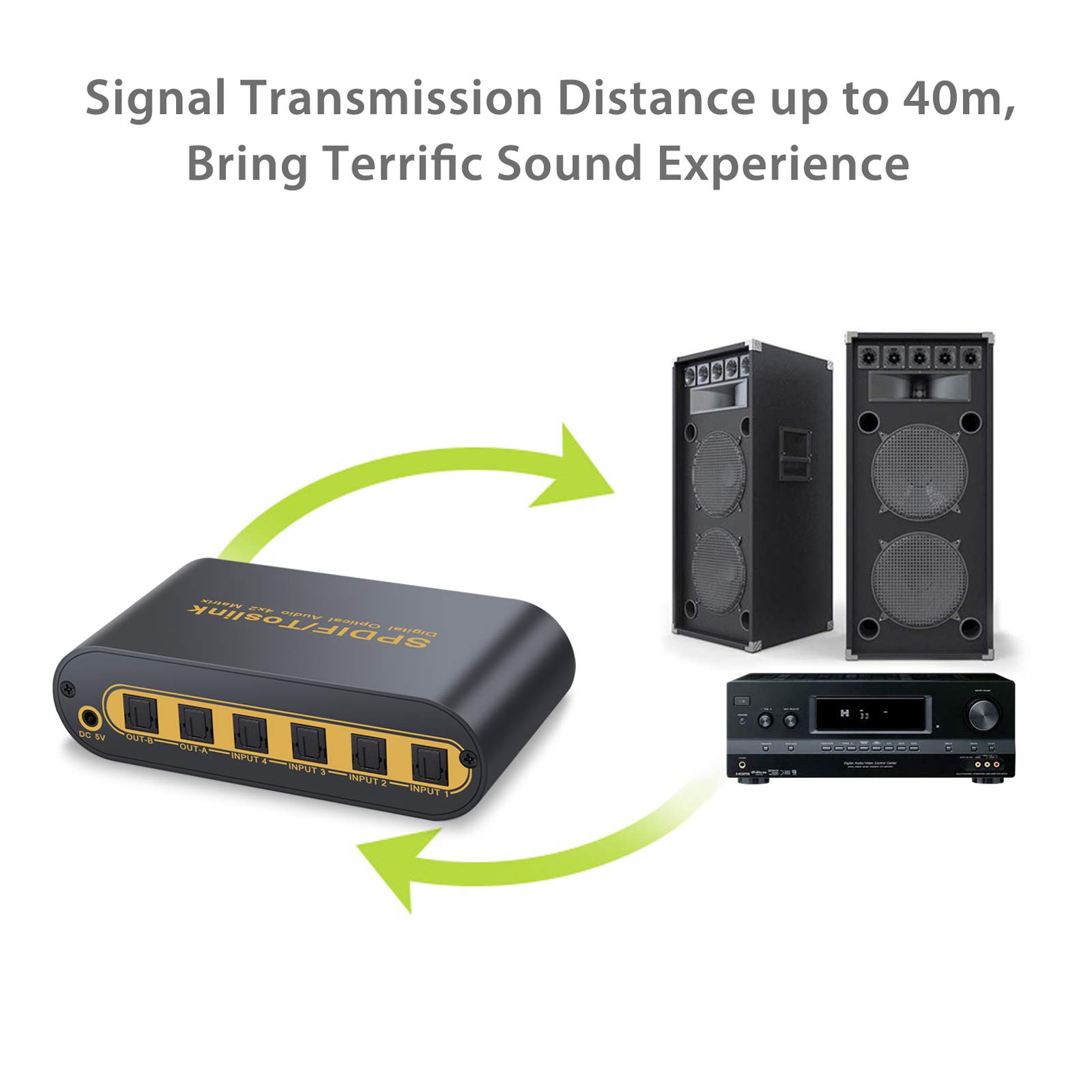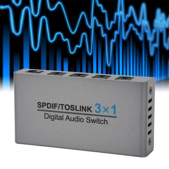 COMMUTATION SONORE FLEXIBLE : Basculez facilement entre 4 sources sonores SPDIF et acheminez-les vers 2 appareils de sortie. CONCEPTION COMPACTE ET : Le commutateur de son SPDIF présente une conception compacte et robuste, adaptée à diverses configurations sonores. Prend en charge différents FORMATS sonores : profitez d'un son haut de gamme avec la prise en charge de DTS HD, de Dolby TrueHD, LPCM2., 0, DTS, de Dolby AC3 et DSD. Commutateur 3X1 pour convertisseur audio optique Rca Toslink Spdif L-R 5.1 - Noir - TV LONGUE DISTANCE DE TRANSMISSION : Transmettez vos signaux sonores jusqu'à 40 m à l'aide de câbles à fibre optique avec une perte inférieure à 0,2 dB/m. Conmutador De Sonido Óptico Digital Spdif 4x2, Divisor De 4 | Cuotas sin interés Commutateur Audio SPDIF Commutateur Audio Numérique Toslink (optique) - 2 Entrées Vers 1 Sortie à 19,90 Switch Fibre Optique Convertisseur Numérique Coaxial à Optique SPDIF Toslink Convertisseur Audio Numérique Support...