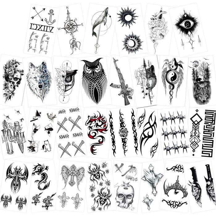 De plus, choisissez un endroit sur la peau qui n’est pas en contact avec les vêtements. Découvrez nos tatouages temporaires pour enfants : motifs amusants, application facile et encres hypoallergéniques pour un look original en toute sécurité Description du produit Les enfants adorent les tatouages ! Attention : Évitez tout contact avec les yeux ou autre muqueuse ! Pour les enlever complètement, utilisez, par exemple, de l’huile bébé. UTILISATION TRÈS FACILE : Les tatouages sont faciles à coller sur la peau et tiennent entre deux et cinq jours. Nos tatouages pour enfants sont produits en Autriche, vegan et testés dermatologiquement. LARGE CHOIX D’ARTICLES POUR ENFANTS : Découvrez de nombreux motifs de tatouages pour enfants et nos nappes à colorier sous notre marque JEKA Notre astuce : Nos tatouages tiennent plus longtemps si vous les fixez avec un pansement liquide, un peu de laque ou du talc. Ils représentent l’activité parfaite lors du jour ou en préparation d’Halloween, pendant les vacances de Toussaint ou d’un après-midi pluvieux entre copains/copines et peuvent être une excellente idée de petit cadeau. Découpez le motif souhaité, ôtez le film protecteur et pressez la feuille côté image sur la peau puis humidifiez le tatouage à l’aide d’un chiffon pendant environ 30 secondes : ça y est, vous pouvez retirer la feuille et le tatouage est terminé. Tatouages temporaires - Tête de mort Halloween - Gommettes - stickers - Découpage - Pliage Vegan Hypoallergénique Halloween Tatouage Temporaire Enfants, 180 Mignons Étanche Pour Enfants Garçons Filles Cadeau De Fête Halloween - Maison Tatouages éphémères Leur utilisation est très facile.
