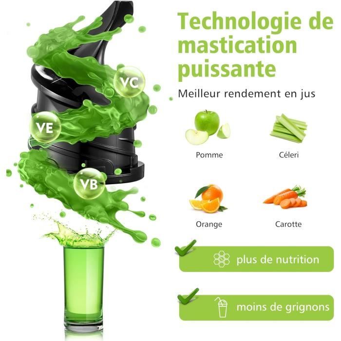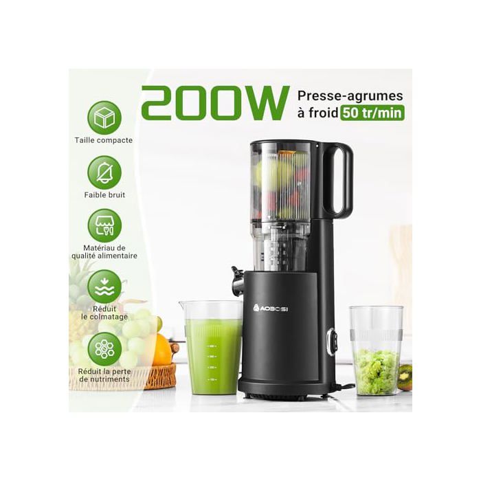 Triple filtre et système en spirale – Rendement élevé de jus garanti grâce à la spirale de coupe automatique, l'extracteur de jus atteint jusqu'à 95 % de rendement de jus – Convient pour le céleri, les betteraves, les raisins, etc. Avec le moteur en cuivre puissant de 220 W, ce juicer slow fonctionne sous 60 dB et traite facilement 10 kg de carottes – silencieux, efficace et puissant comme un juicer aobosi. Découvrez notre test complet de l'extracteur de jus Aobosi XXL : moteur silencieux, efficacité à 90 tr/min. Conseils et avis pour choisir le meilleur appareil Extracteur de jus de fruits et légues AOBOSI pour fruits et légues... Un véritable vainqueur du test Juicer pour les amateurs conscients. AOBOSI Extracteur de Jus, Slow Juicer Presse à Froid avec Ouverture de Deux modes et fonction retour – Pour tous les fruits et légumes Avec le mode Soft et Hard, vous pouvez tout presser, des baies aux carottes. La fonction de retour empêche le colmatage. Extracteur Fruits Légumes Entiers Presse Agrumes Lent Aobosi Extracteur De Jus Aobosi - Moteur Silencieux 150W - Presse Lente - Sans BPA - Noir Juicer Machine Slow Juicer Moteur Cuivre 220w Moins d'oxydation, plus de vitamines. Ouverture de remplissage de 135 mm – Plus de fruits, moins d'effort. Moteur haute performance – Silencieux et puissant comme l'extracteur de jus Aobosi.