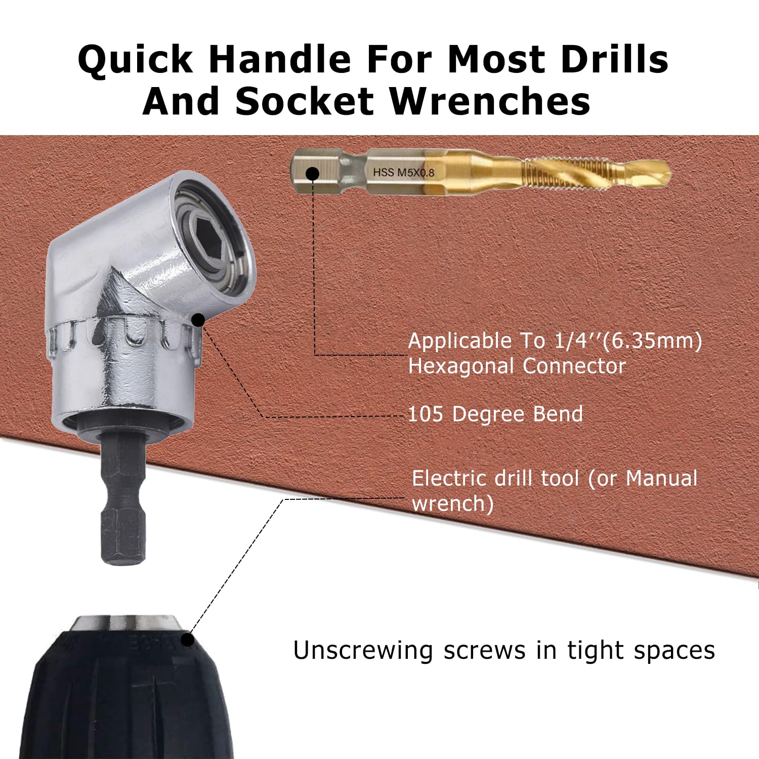 Renvoi Dangle Pour Visseuse Adaptateur De Perceuse, Embout Coudé à 105 °, 1/2 Pouces, 3/8 Pouces, 1 Outil Vissage Espaces Restreints Adaptateur d'angle à 105 degrés : sa fabrication en acier allié et sa finition soignée assurent un fonctionnement fluide de votre perceuse électrique., tournevis électrique Porte embout coudé - WURTH Adaptateur d'angle 105° : Cet accessoire de perceuse d'angle permet une rotation de 105° pour atteindre les espaces restreints et les zones difficiles d'accès Embout d'extension d'angle à 105°. Adaptateur de perceuse à angle droit : compatible avec toutes les perceuses électriques et clés à douille, il permet d'accéder aux zones exiguës et difficiles d'accès., visseuse à angle de 105° Cikonielf adaptateur de tournevis pour perceuse Adaptateur de perceuse à angle droit Attachement Perceuse-visseuse d'angle : conception à 105°, idéale pour les espaces restreints, augmentant la puissance de la visseuse sans fil, adaptateur de perceuse d'angle à 105° - Matériau : Tournevis électrique en acier allié au chrome-vanadium. - Vous fournissant suffisamment d'outils de rechange pour perceuse à angle afin de répondre facilement à divers besoins de la vie quotidienne. - Le matériau en acier allié et la bonne fabrication permettent à votre perceuse électrique de fonctionner en douceur. - Adapté aux professionnels comme aux non-professionnels, il peut grandement faciliter votre travail., Tournevis à tige hexagonale. Profitez d'une expérience utilisateur optimale. Adaptateur d'angle 105° : Cet accessoire de perceuse d'angle permet une rotation de 105° pour atteindre les espaces restreints et les zones difficiles d'accès. - Le support magnétique intégré robuste maintient les forets et les embouts de vissage standard et empêche la chute de l'adaptateur de perceuse à angle de 105 degrés.